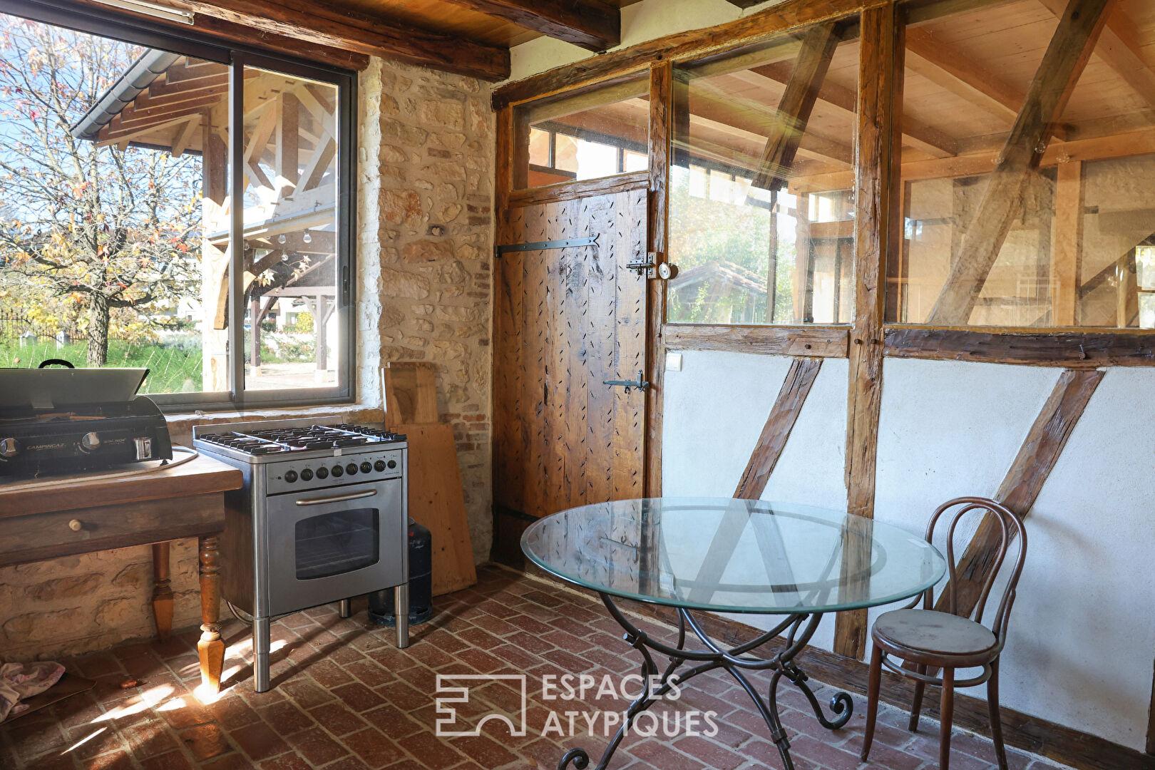 En rez-de-jardin, une véranda prolonge la maison, tandis qu’une buanderie, une cave et une charmante pièce d’été équipée d’un four à pain invitent à la convivialité.