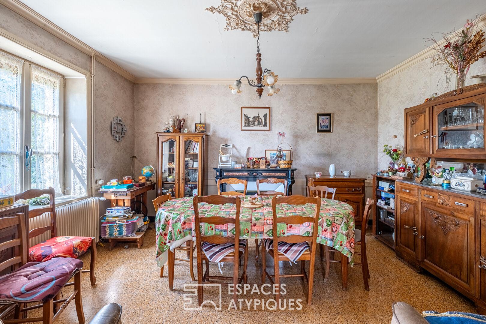 L’intérieur s’organise autour d’espaces généreux qui témoignent du charme de l’ancien : hauteurs sous plafond, distribution traditionnelle et éléments d’époque à valoriser. Les pièces de vie laissent entrevoir de nombreuses possibilités d’aménagement, permettant de repenser les volumes selon les envies. Les niveaux existants accueillent plusieurs pièces pouvant être redistribuées afin de créer une habitation contemporaine tout en conservant l’authenticité du lieu. Les greniers, facilement exploitables, constituent une véritable opportunité pour augmenter la surface habitable et imaginer de nouveaux espaces de vie.