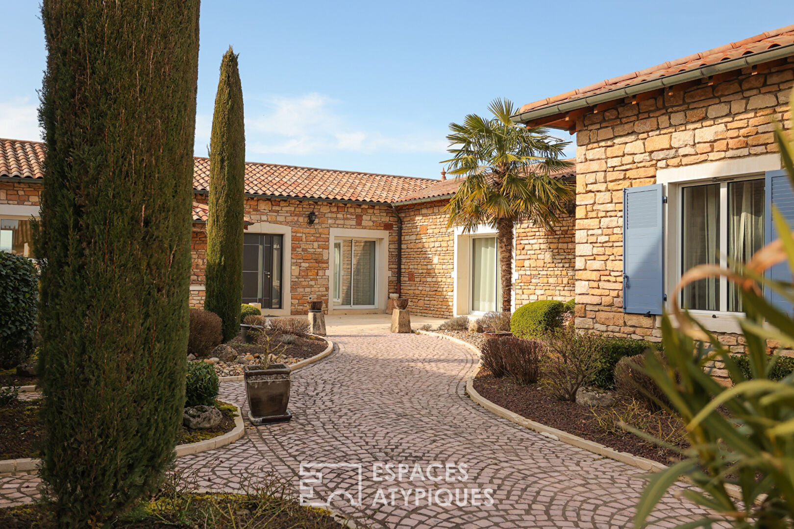 Dans un village dynamique aux portes de Mâcon, à proximité des commerces, des axes autoroutiers et du TGV, cette somptueuse demeure climatisée d’une surface d’environ 275m², séduit par son architecture inspirée des bastides et haciendas méditerranéennes.