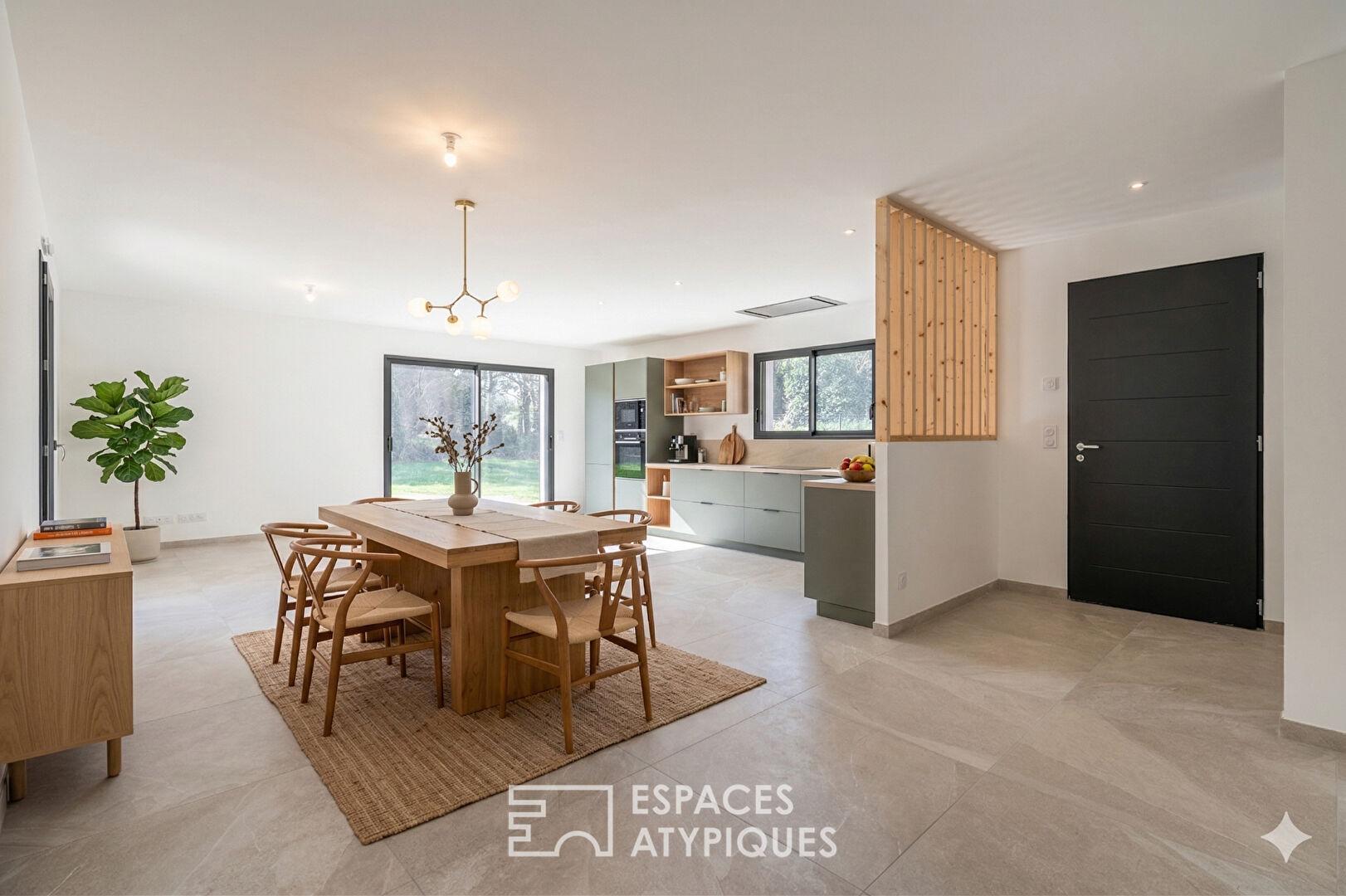 Elle se compose de quatre chambres, dont une belle suite parentale offrant un espace intime et fonctionnel. L’ensemble de la maison bénéficie d’une exposition sud-est, garantissant une luminosité optimale tout au long de la journée.