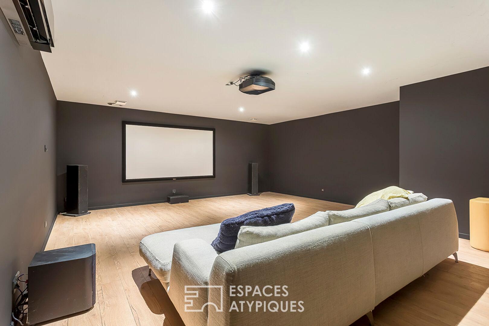 Pensée pour le bien-être et les moments de partage, la maison propose également une salle de cinéma, idéale pour prolonger les soirées dans une ambiance feutrée.