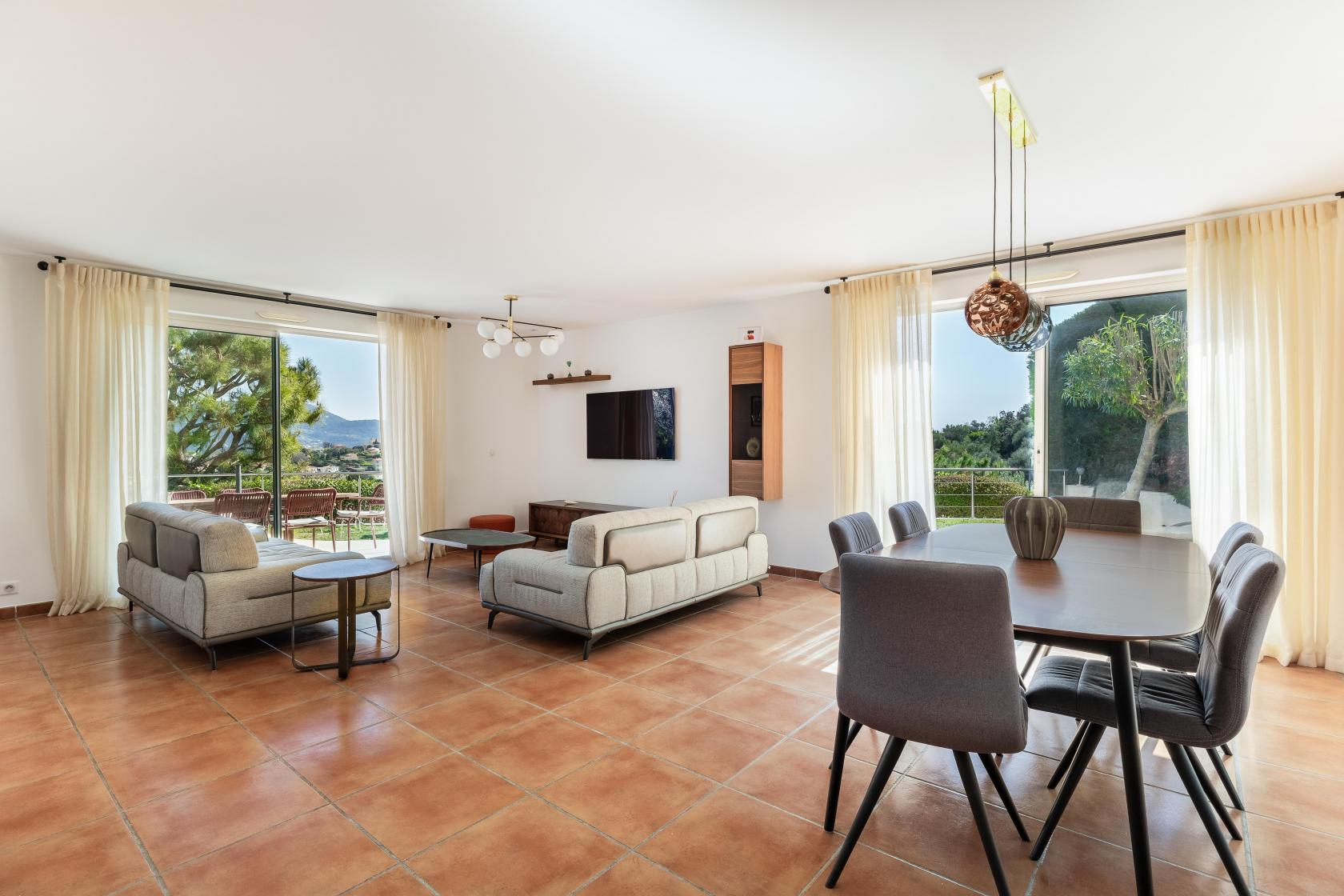 Le cœur de la demeure bat dans une vaste pièce de vie de 50 m², baignée de lumière et entièrement tournée vers l’horizon. Cet espace se prolonge naturellement vers les extérieurs, où une piscine au sel récemment rénovée semble se fondre dans une végétation luxuriante. Ici, la nature s’invite dans chaque coin de vue, créant un cadre de détente privilégié.
