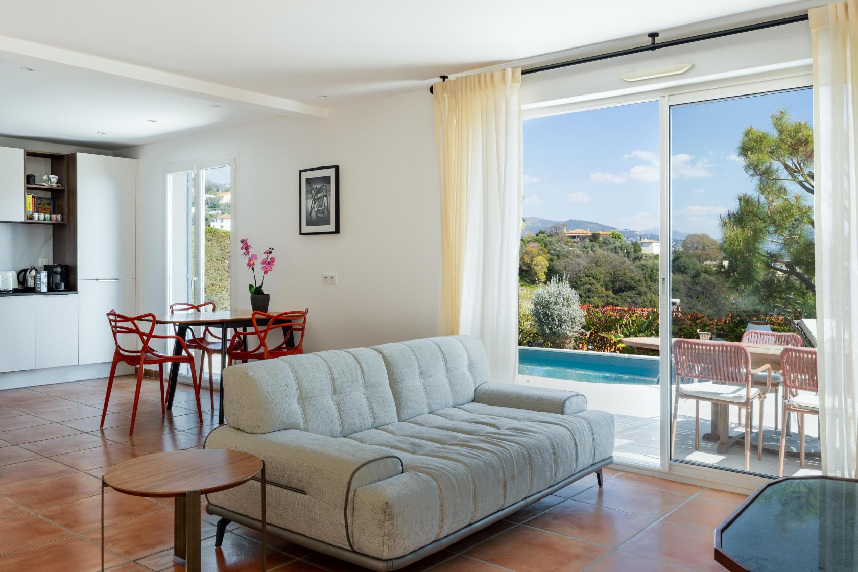 Perchée dans un écrin de verdure à seulement douze minutes du centre de Nice, cette villa de charme de 148 m² au sol, séduit d’emblée par ses lignes épurées et son atmosphère sereine. Véritable belvédère sur la Côte d’Azur, elle s’ouvre sur un panorama saisissant où l’azur de la Méditerranée dialogue avec la douceur des collines environnantes.
