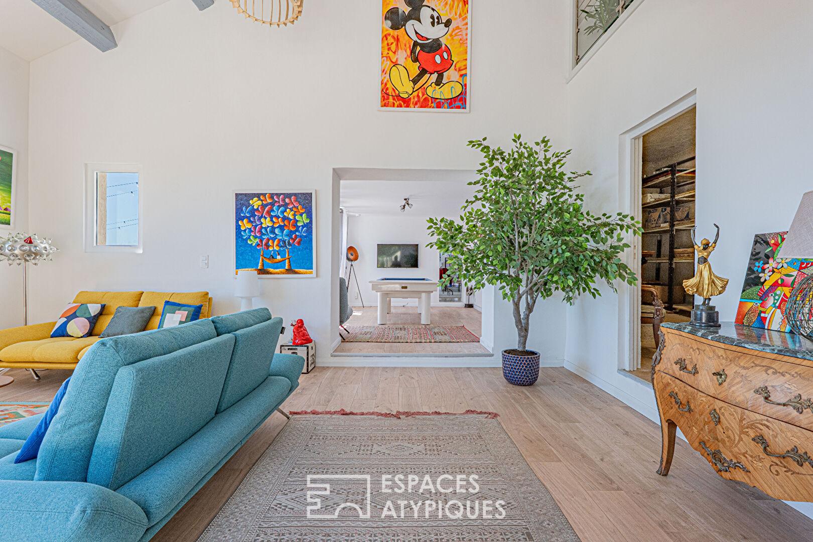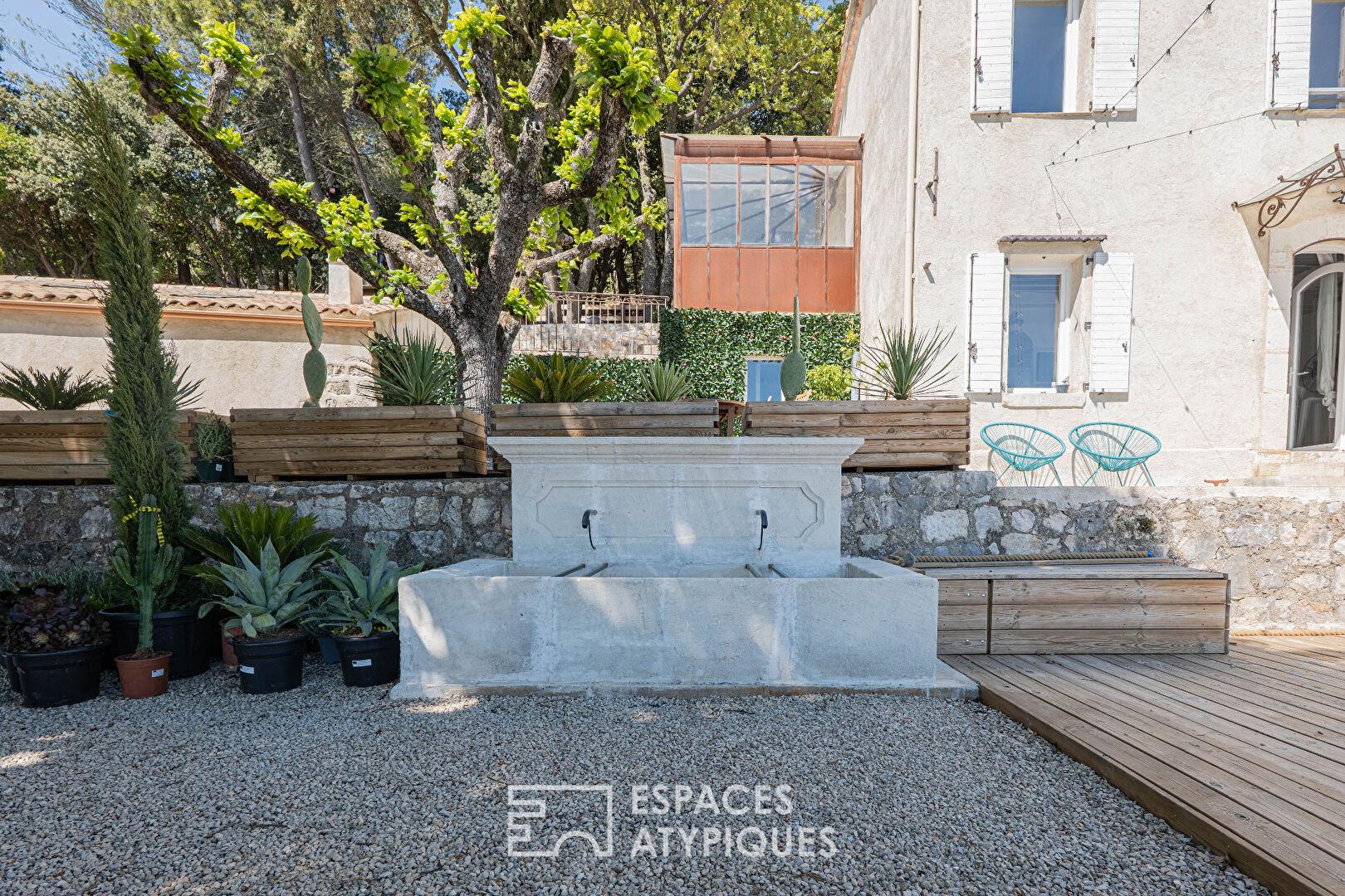 Véritable hameau de caractère, l’architecture s’articule autour d’une demeure de maître de 210 m² complétée par une bergerie authentique. Les intérieurs révèlent une signature esthétique audacieuse, mêlant des volumes épurés sous des hauteurs sous plafond généreuses à une décoration pop-art contemporaine où des oeuvres iconiques dialoguent avec le caractère brut du bâti historique. Le véritable luxe de cette propriété réside dans sa souveraineté totale : une autonomie énergétique orchestrée par une installation solaire de pointe garantissant plus d’une semaine d’autosuffisance. La gestion de l’eau, pilier vital de ce refuge, repose sur un système ingénieux de sources et de puits alimentant des réserves de 120 m³, assurant une libreté totale au coeur de cet écrin « off-grid ».