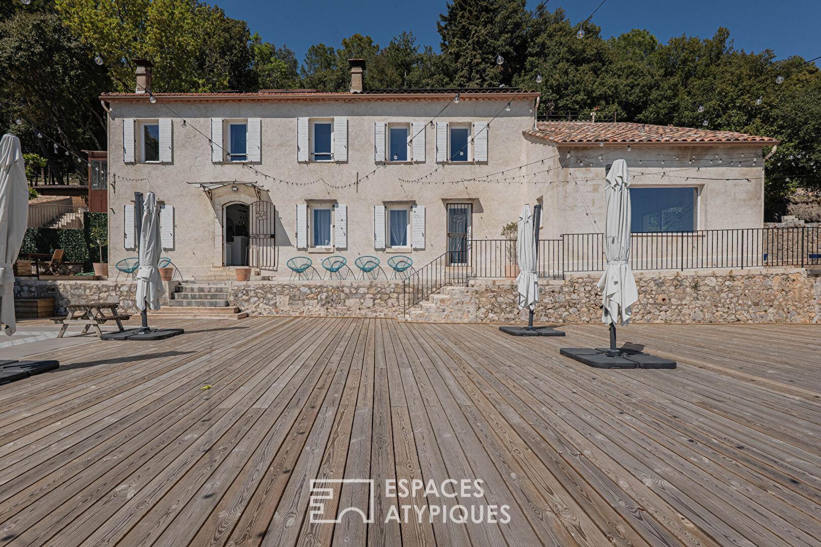 Aujourd’hui, le domaine accueille des séminaires d’entreprises et des événements privés d’envergure, pouvant réunir jusqu’à 150 convives sur ses vastes terrasses en bois ou ses restanques paysagères. L’expérience de séjour se prolonge au coeur de la canopée grâce à une cabane dans les arbres et des tentes aménagées, offrant aux hôtes une nuit suspendue entre ciel et terre.