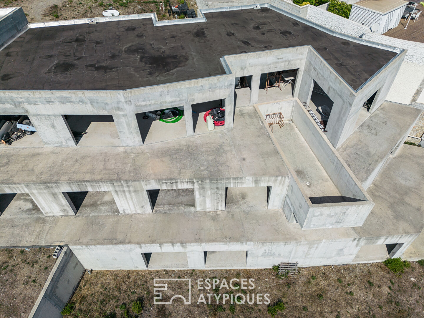 Un énorme potentiel est à envisager pour ce plateau brut de béton d’une superficie totale de presque 700m2 (habitable, technique, stationnements), répartis sur trois niveaux.