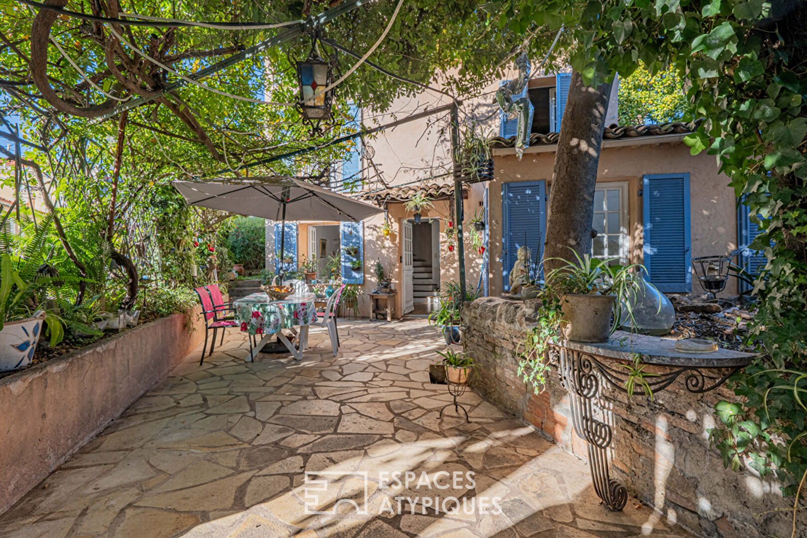Le jardin, véritable havre de paix, accueille un atelier qui peut aisément être aménagé en chambre supplémentaire selon vos envies.