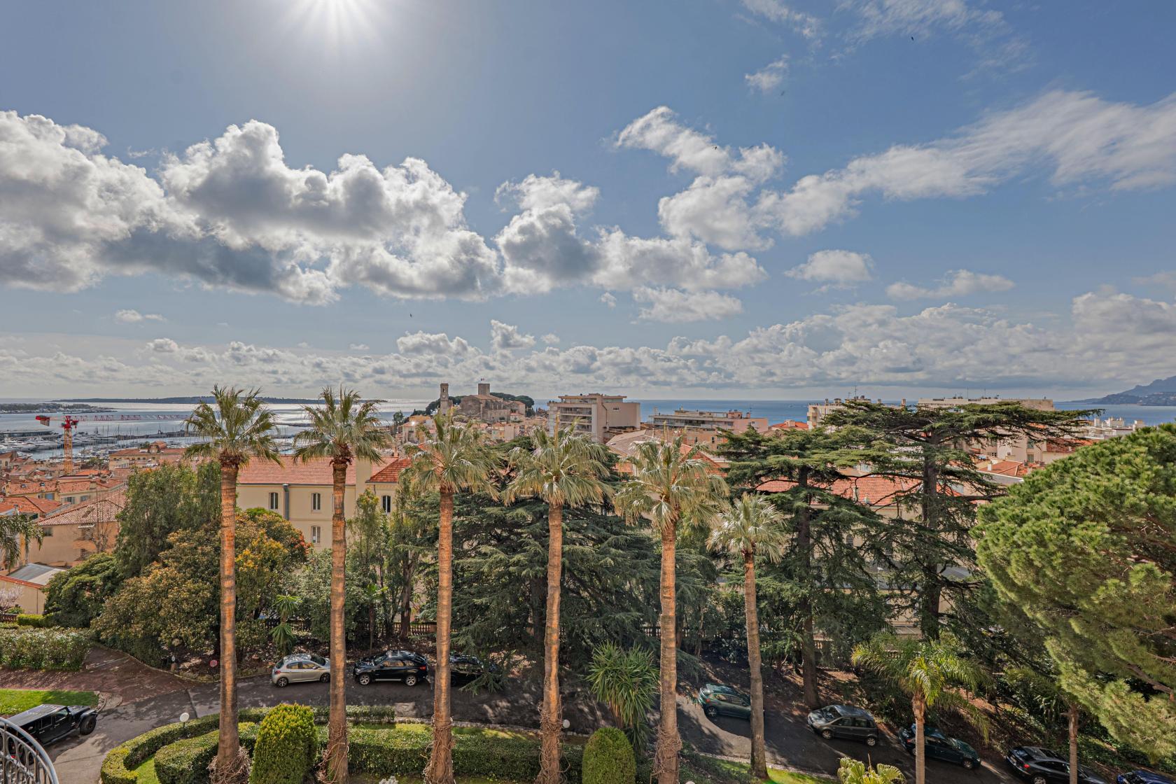 L’intérieur se distingue par des volumes généreux et une luminosité constante, magnifiée par une hauteur sous plafond remarquable de 3,30 mètres. Le charme de l’ancien opère dès l’entrée, où un parquet d’origine en acajou, soigneusement patiné par le temps, guide les pas vers un séjour spacieux. Les larges ouvertures cadrent une vue panoramique imprenable sur la Méditerranée et les Îles de Lérins, transformant chaque fenêtre en un tableau vivant évoluant au gré des reflets azuréens.