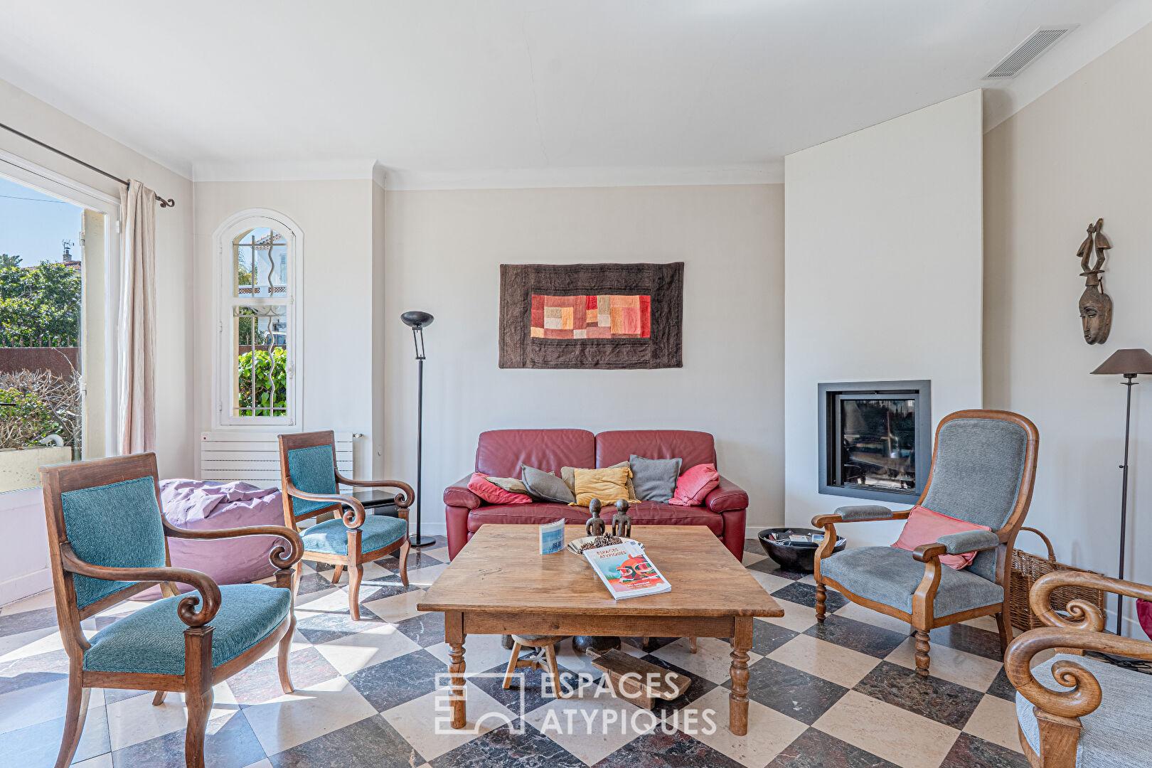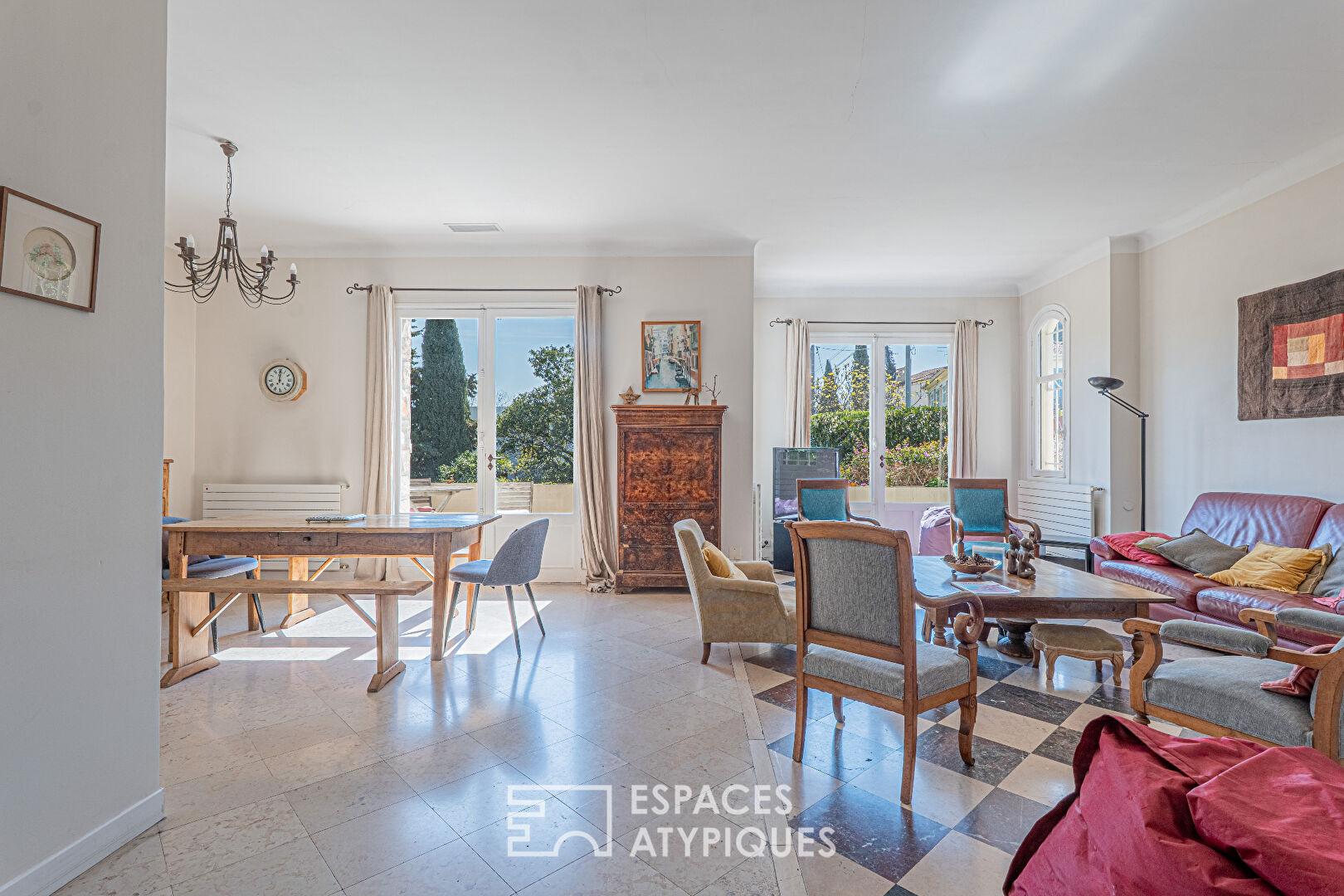 Nichée dans le confidentiel secteur du Petit Juas, cette demeure de 174 m² s’affirme comme un manifeste architectural où la minéralité de la pierre naturelle dialogue avec le graphisme de la brique. Véritable refuge urbain posé sur un terrain en restanques de 1 800 m², elle offre une parenthèse bucolique à la signature esthétique forte, à seulement quelques minutes de l’effervescence citadine.