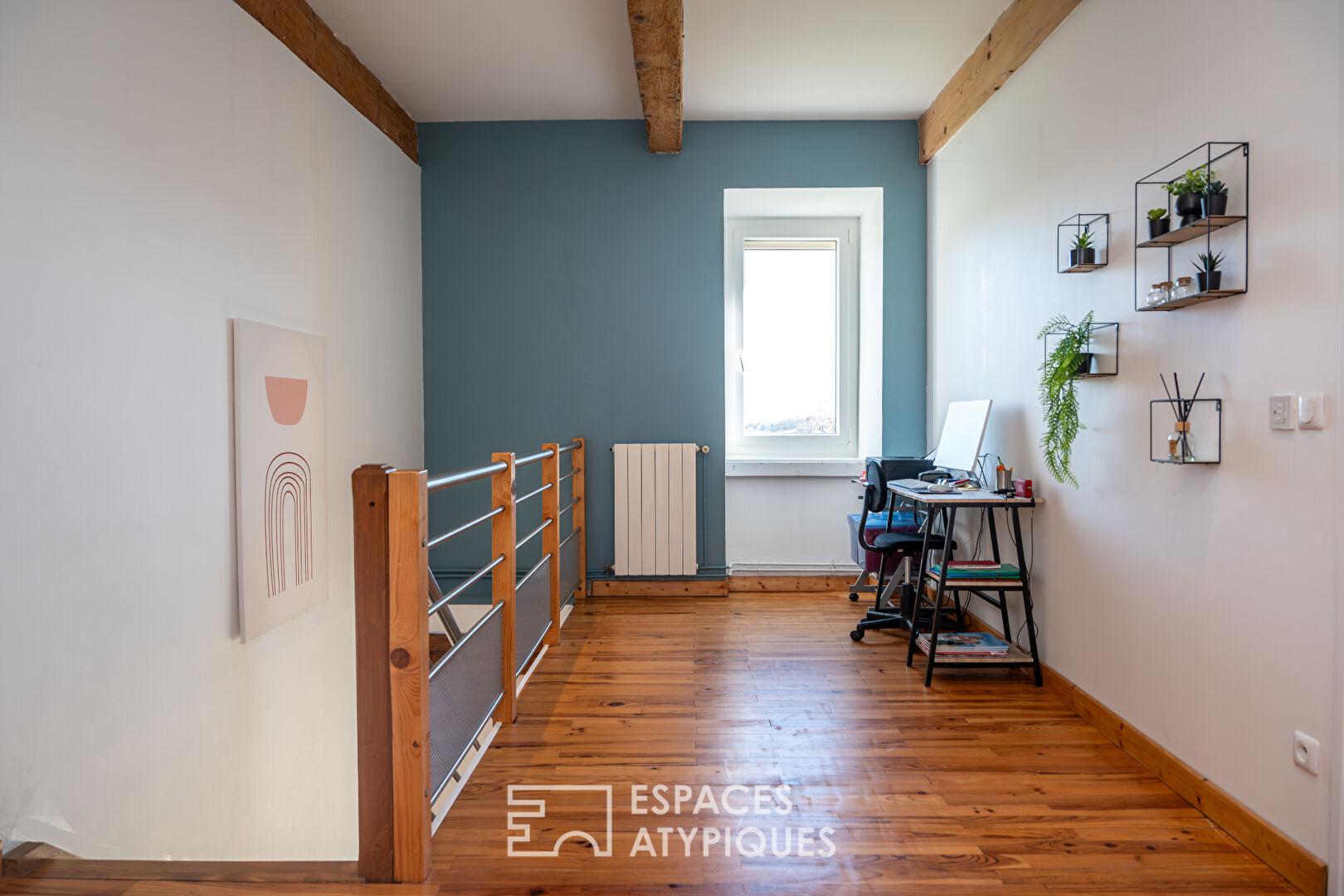 Cette habitation de caractère, doit sa luminosité, à une exposition traversante Est et Ouest, puis à de beaux volumes.