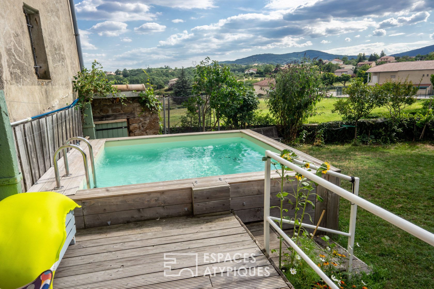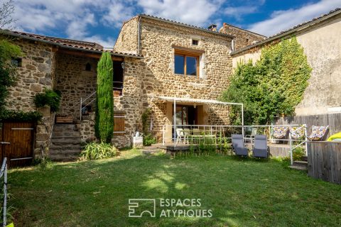 A 10mn de l’autoroute A7, 1 heure de Lyon, et pourtant déjà dans l’Ardèche Verte, cette maison de caractère est idéalement située. A la lisière du village, elle offre un joli panorama sur la campagne sans vis-à-vis. Une école et un commerce multi-activités sont à deux pas. D’une surface d’environ 150m2, cette maison est astucieusement rénovée pour proposer 3 chambres, 2 salles d’eau, une cuisine équipée, un grand salon plus deux grandes salles voutées au rez de jardin. Viennent compléter ce bien un garage, un atelier, une cave, un puit et une petite piscine joliment intégrée dans un jardin d’environ 200m2. C’est donc un coup de coeur assuré pour cette maison en pierre qui parvient à allier le charme de l’ancien et tout le confort d’aujourd’hui.