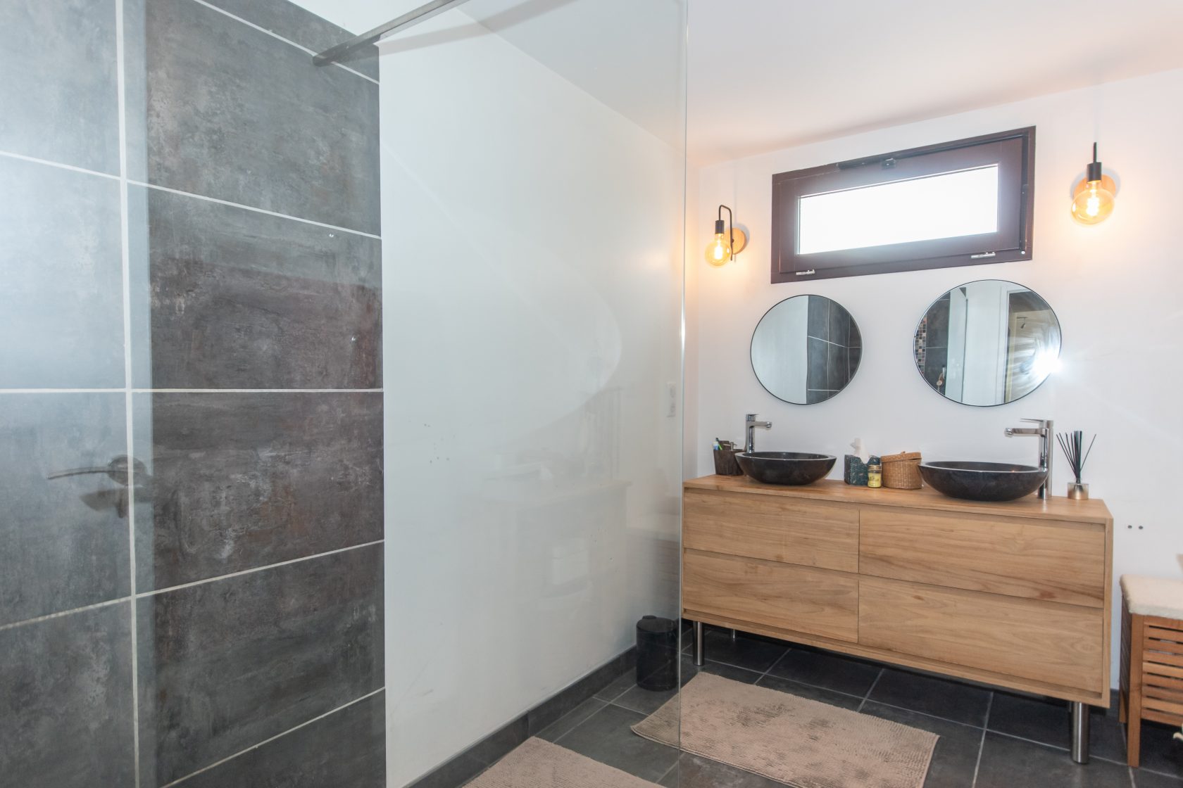 Construite en 2018, dans un environnement préservé, cette maison à ossature bois bardée de mélèze comptabilise environ 175M² habitables sur un peu plus 4600M² de terrain. Le rez-de-chaussée, accueille une grande pièce de vie de 69m² ouverte sur la nature et exposée plein sud, deux chambres, un dressing et une salle d’eau avec une douche à l’italienne et son lavabo doubles vasques.