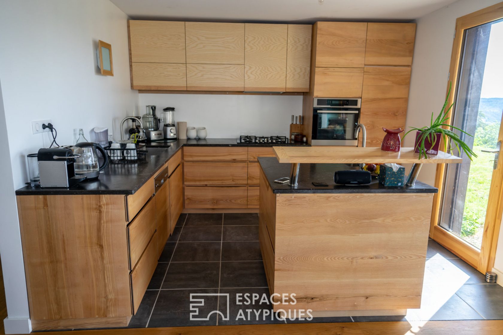 Située tout proche du charmant village de St Michel de Chabrillanoux, à moins de 40min de l’entrée d’autoroute et moins d’une heure de Valence, se dresse cette étonnante maison écologique et bioclimatique.