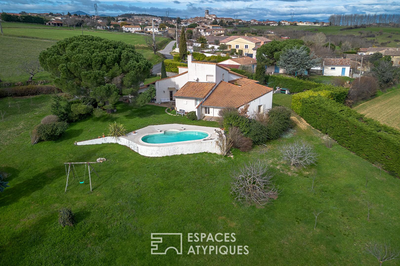 La vue panoramique d’un habitat singulier en Ardèche