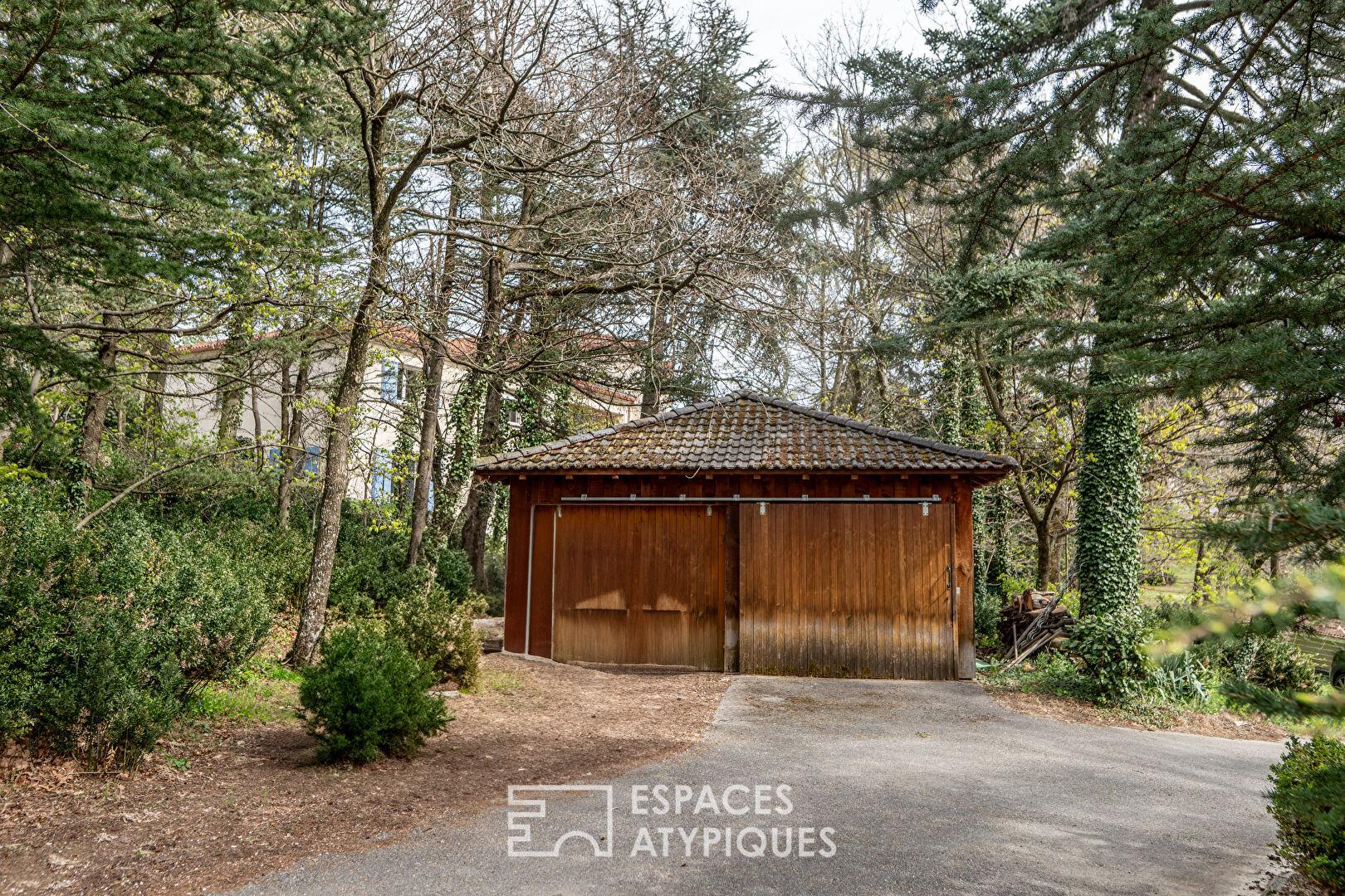 L’élégante bâtisse, garde son mystère, dissimulée à l’extrémité d’un paisible quartier résidentiel. C’est par son entrée privée, que vous gagnerez votre garage, posté au pied du parc qui vous est dédié, de 3100 m². Des végétaux et quelques murs, soulignent naturellement ses limites et vous garde à l’abri des regards.