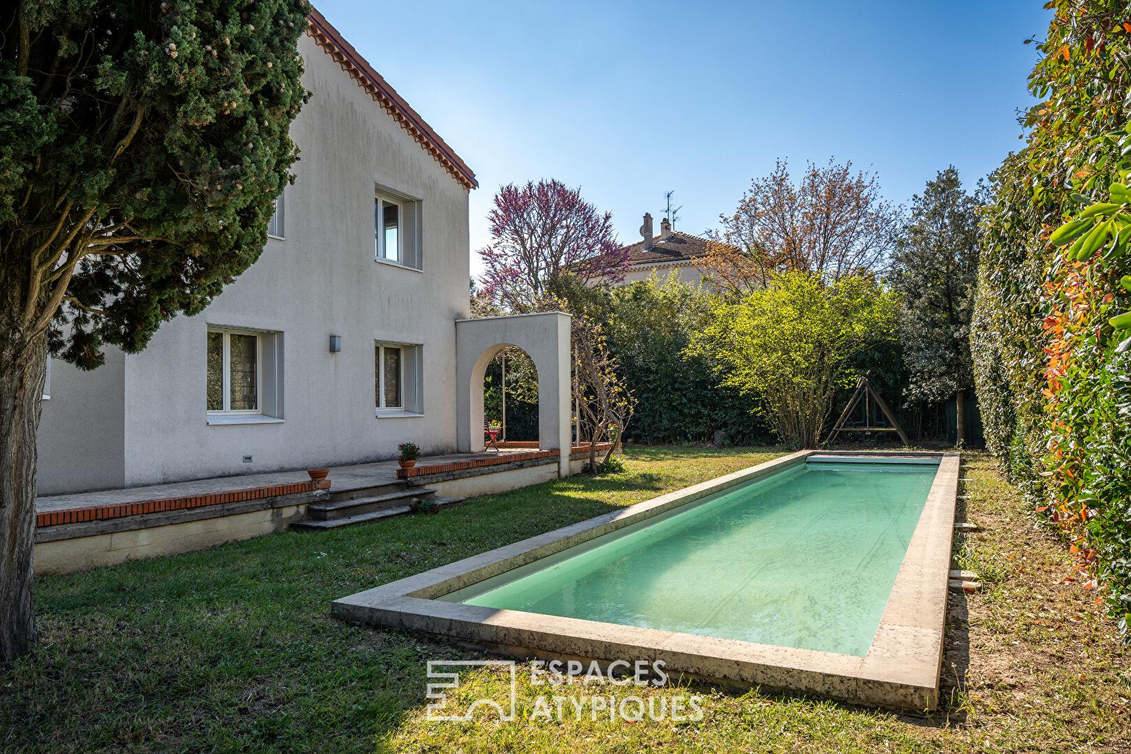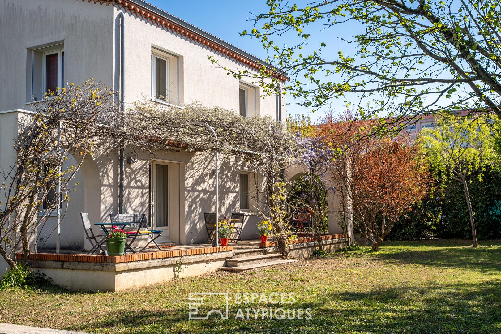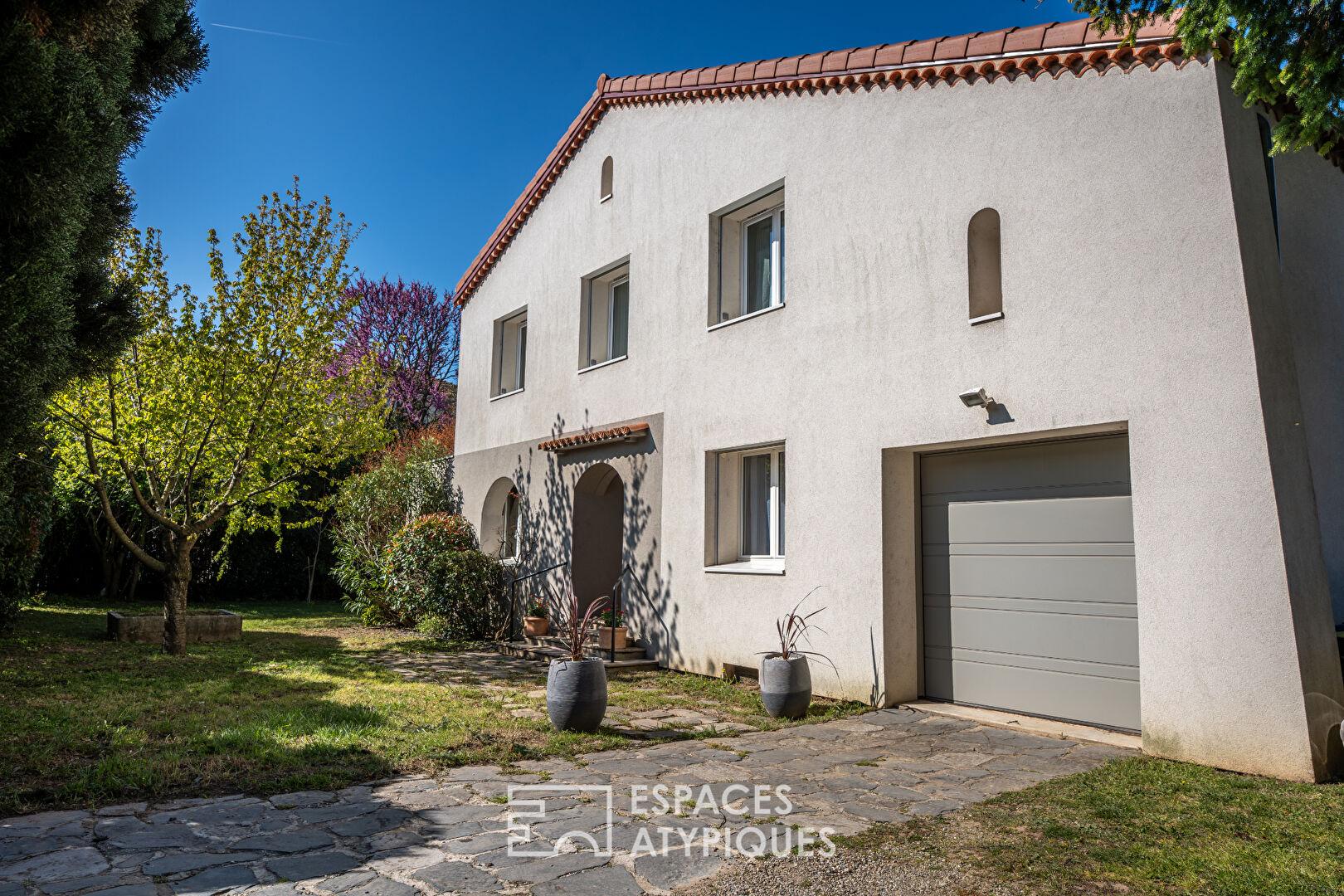 À l’extérieur, le jardin paysager invite à savourer chaque instant. Entre la terrasse ombragée par une glycine et la piscine aux lignes épurées, les beaux jours prennent ici une dimension particulière. Le calme environnant, la proximité du centre de Valence, des commerces, écoles et axes de circulation viennent parfaire ce cadre de vie privilégié.