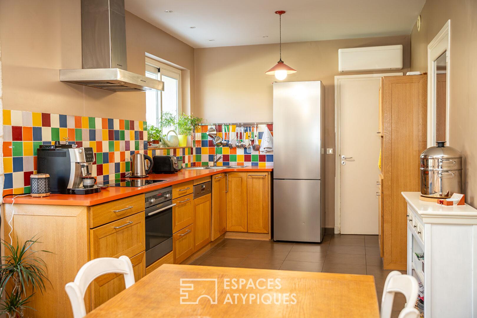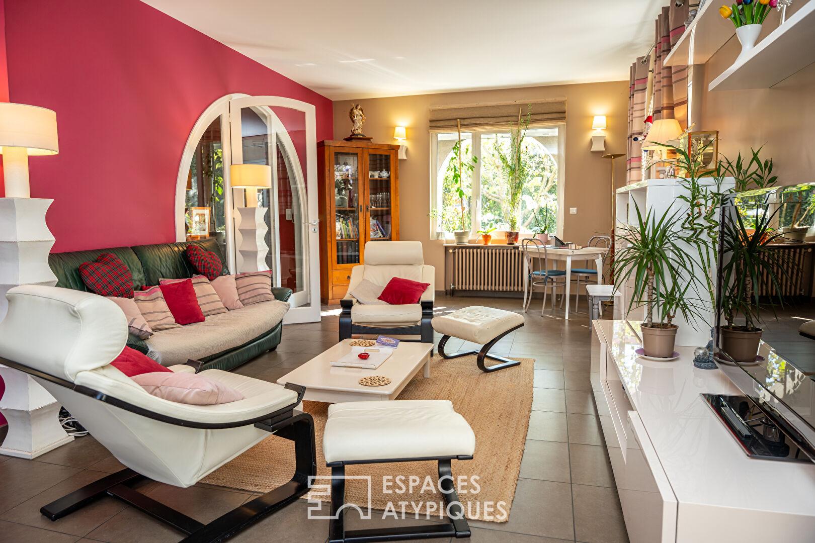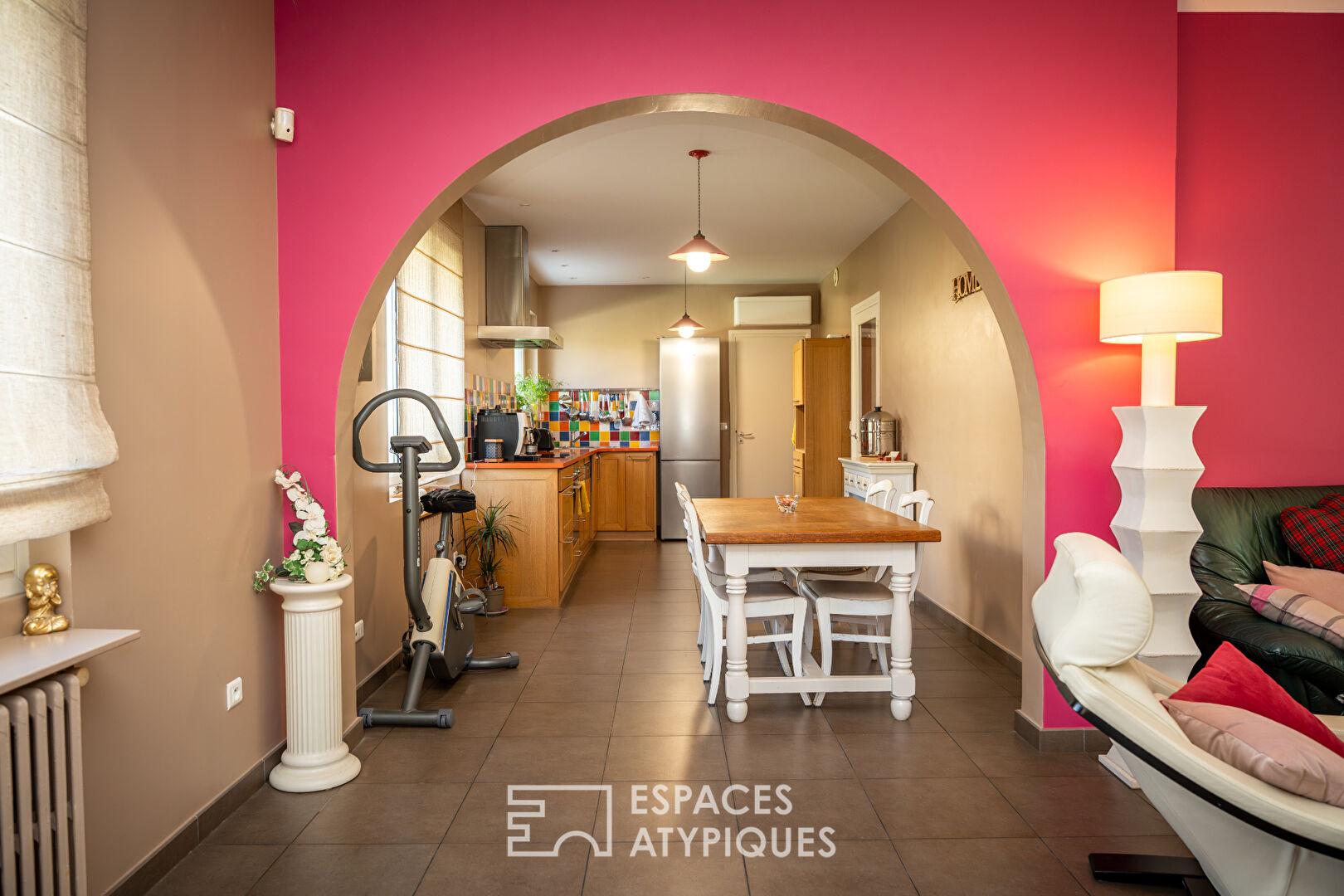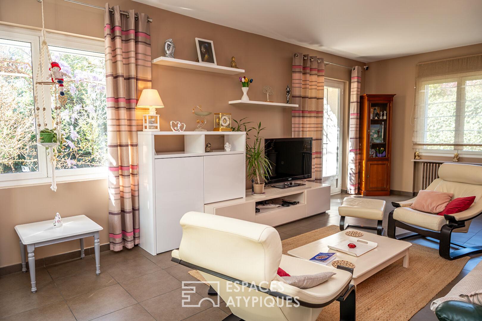 À Guilherand-Granges, en co-exclusivité, dans un quartier résidentiel recherché et à proximité immédiate du centre de Valence, cette maison d’architecte de 185 m² s’inscrit avec élégance sur un terrain arboré de 1 196 m² agrémenté d’une piscine chauffée de 15×3,5m avec volet de sécurité. Derrière sa silhouette discrète, elle dévoile des volumes généreux et une atmosphère chaleureuse, pensée pour une vie de famille douce et inspirée, avec en prime un excellent DPE témoignant de travaux de rénovation énergétique soignés dont une isolation par l’extérieur des murs et l’installation d’une PAC air/eau.
