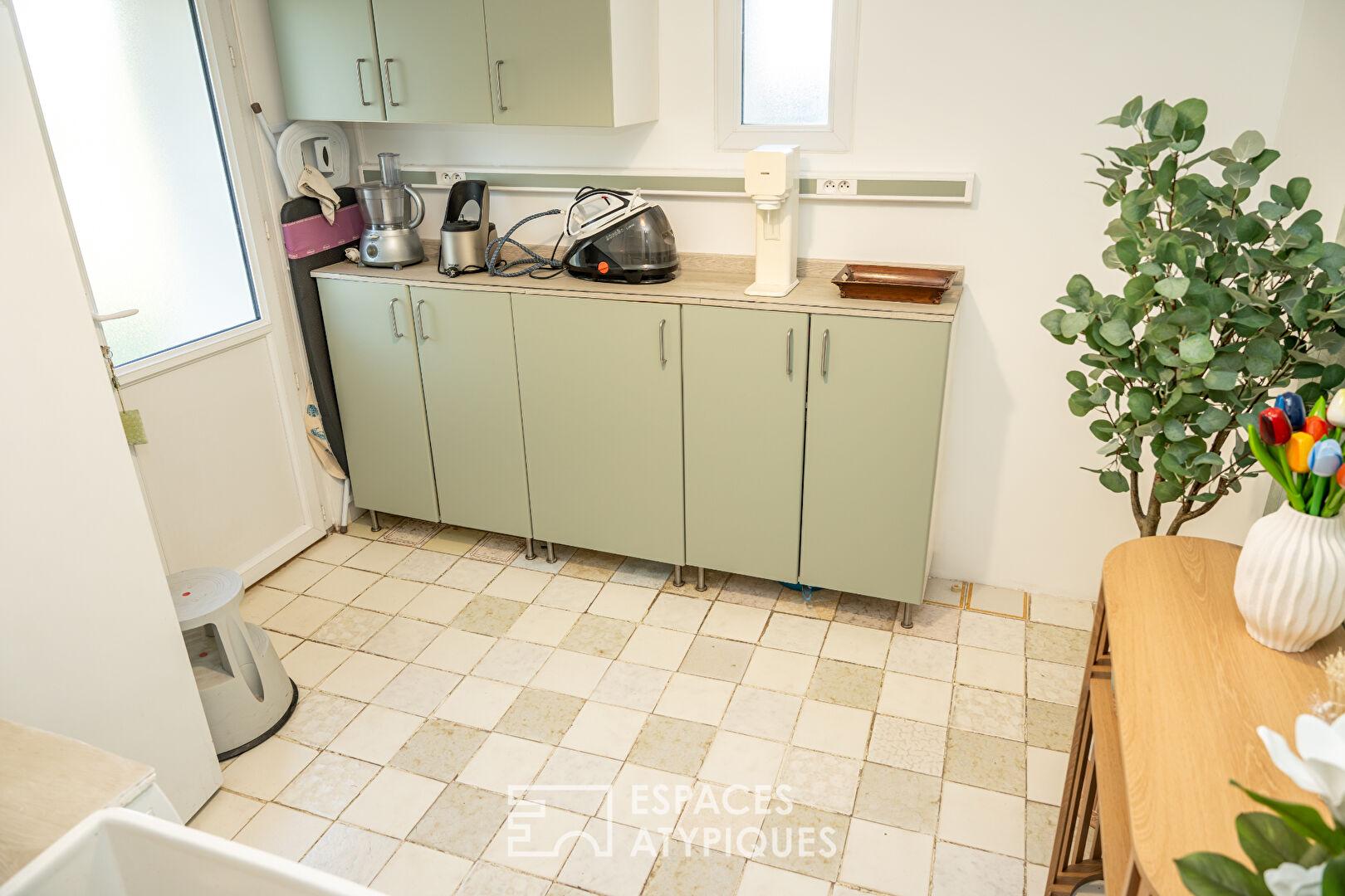 Dès l’entrée, la lumière s’invite avec naturel et accompagne les lignes fluides du séjour-salon de 32 m², où une porte cintrée vitrée apporte une signature singulière. La cuisine, conviviale et fonctionnelle, prolonge cet espace de vie avec justesse, complétée par une buanderie indépendante. Une chambre et sa salle d’eau en rez-de-chaussée offrent un espace d’accueil idéal. À l’étage, l’espace nuit se déploie harmonieusement : une suite parentale avec dressing et salle d’eau, quatre chambres supplémentaires, un bureau propice à la concentration, ainsi qu’une salle de bains composent un ensemble équilibré et confortable. Un sous-sol et un garage viennent compléter ce bien.