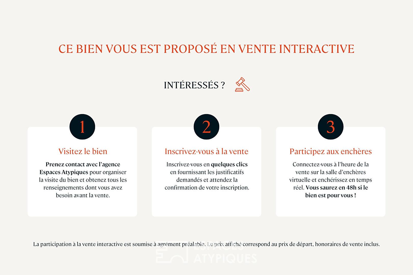 Ce bien est proposé à la vente interactive, un processus encadré par ENCHÈRES IMMO.