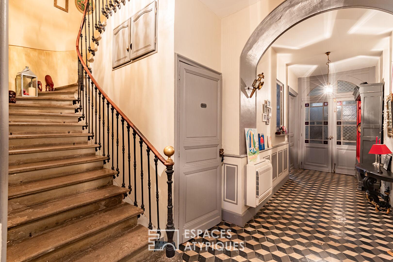 Les escaliers à l’ancienne, typiques des maisons bourgeoises, participent au charme des lieux et sont sublimés par un puits de lumière agrémenté d’un vitrail, diffusant une lumière douce et chaleureuse.