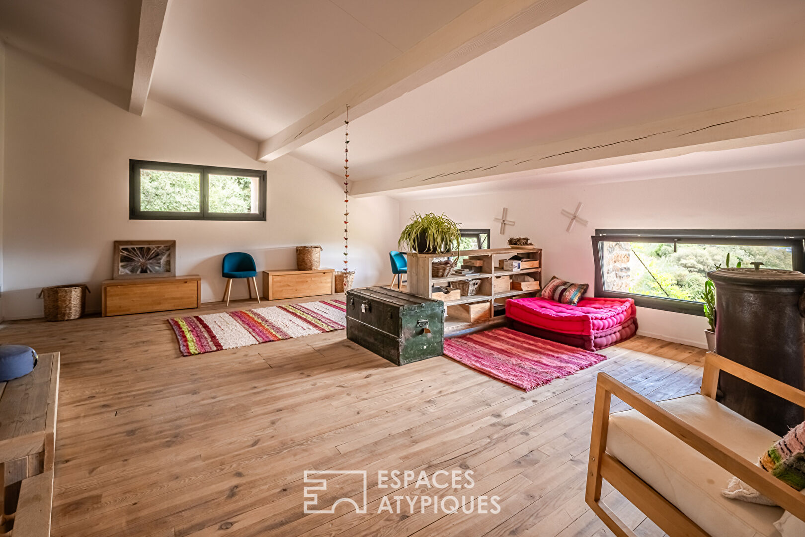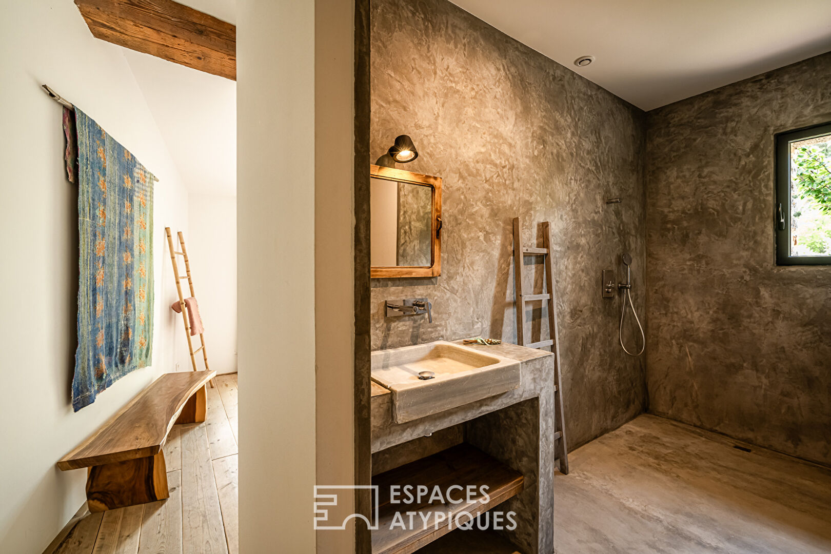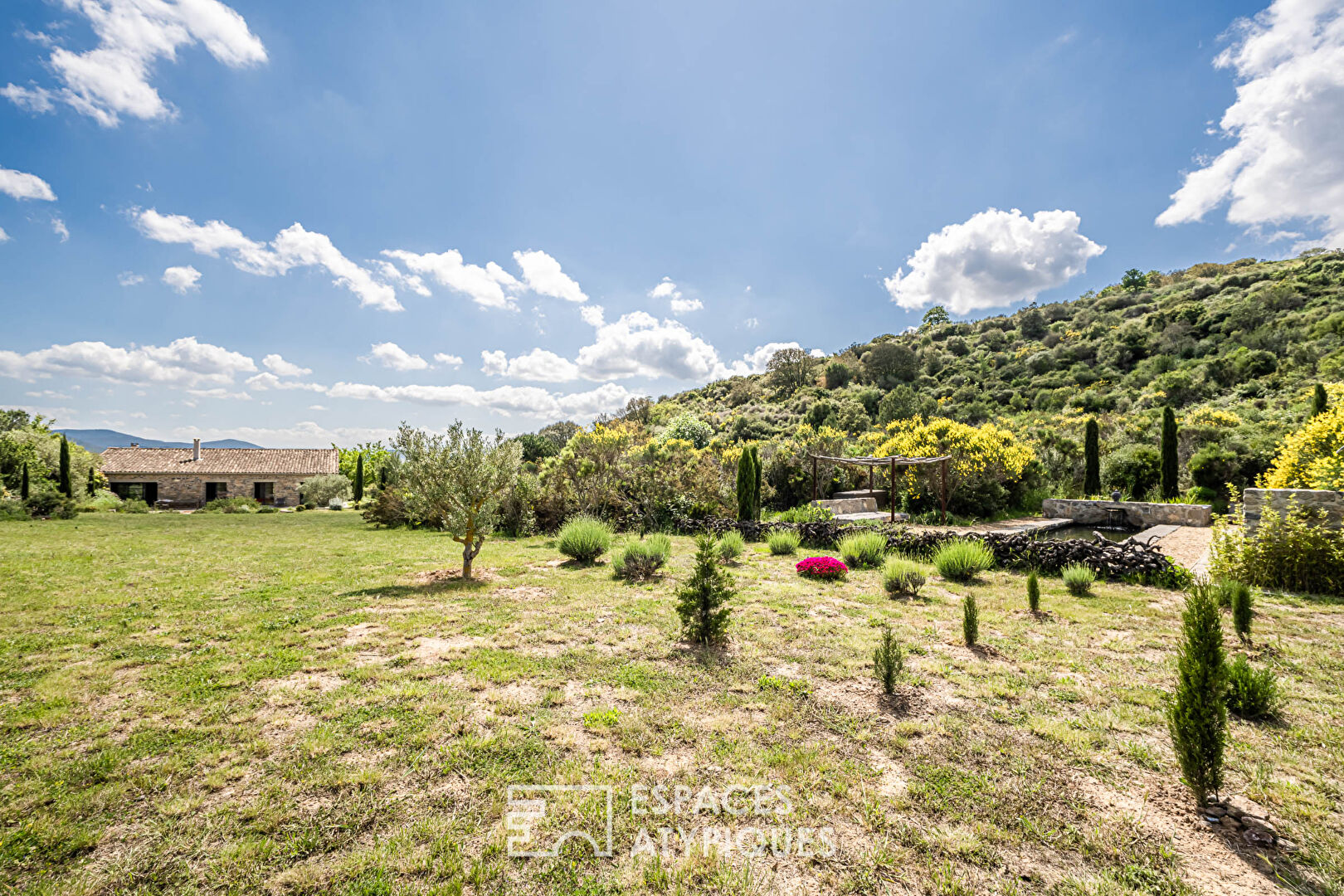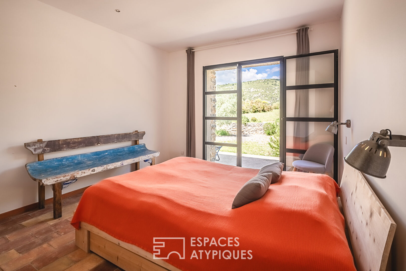 Issue de la réhabilitation et de l’agrandissement d’une ancienne bergerie au charme préservé, elle offre une interprétation plus contemporaine mais respectueuse du cachet de la bâtisse d’origine et révèle un environnement de plus de 3 ha.