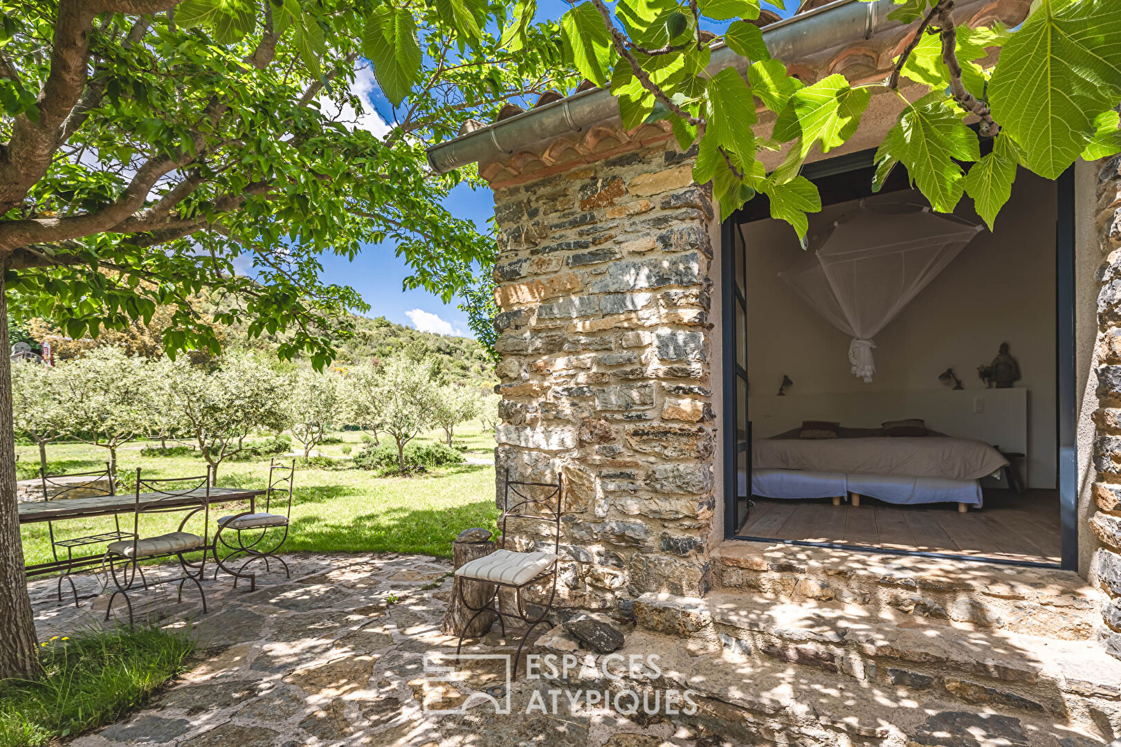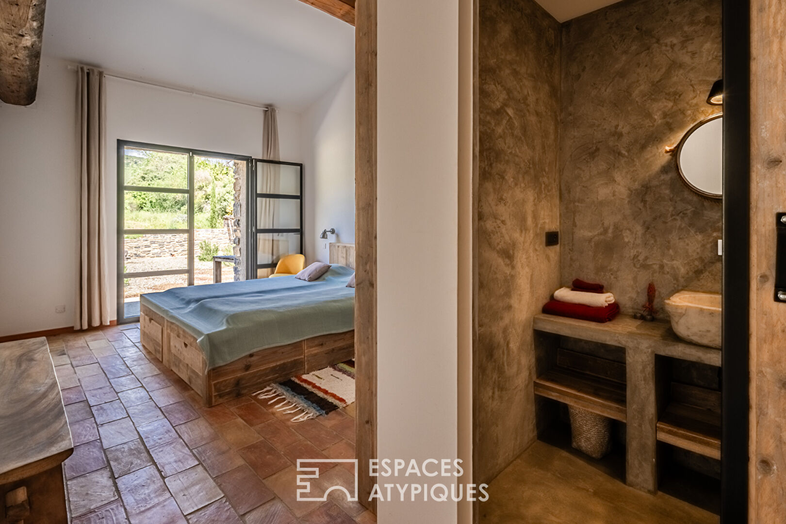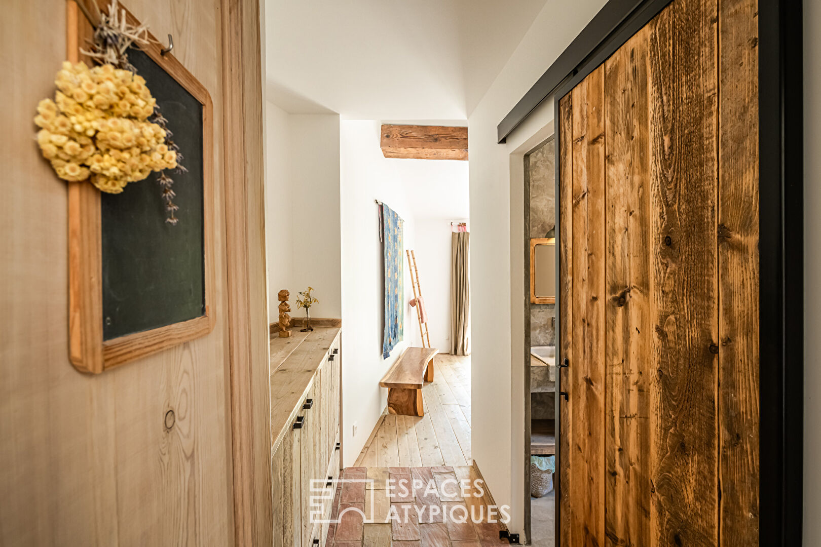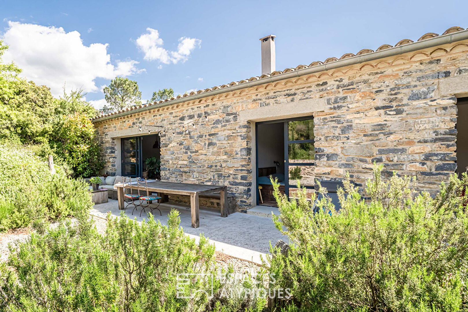 Issue de la réhabilitation et de l’agrandissement d’une ancienne bergerie au charme préservé, elle offre une interprétation plus contemporaine mais respectueuse du cachet de la bâtisse d’origine et révèle un environnement de plus de 3 ha.