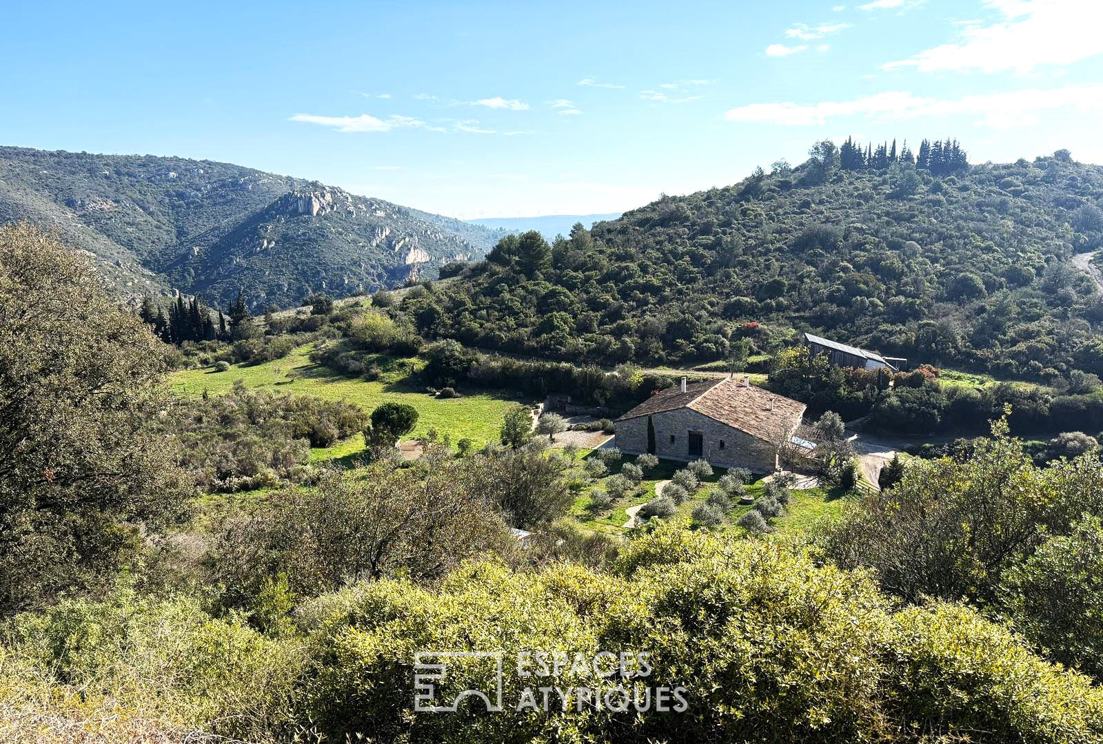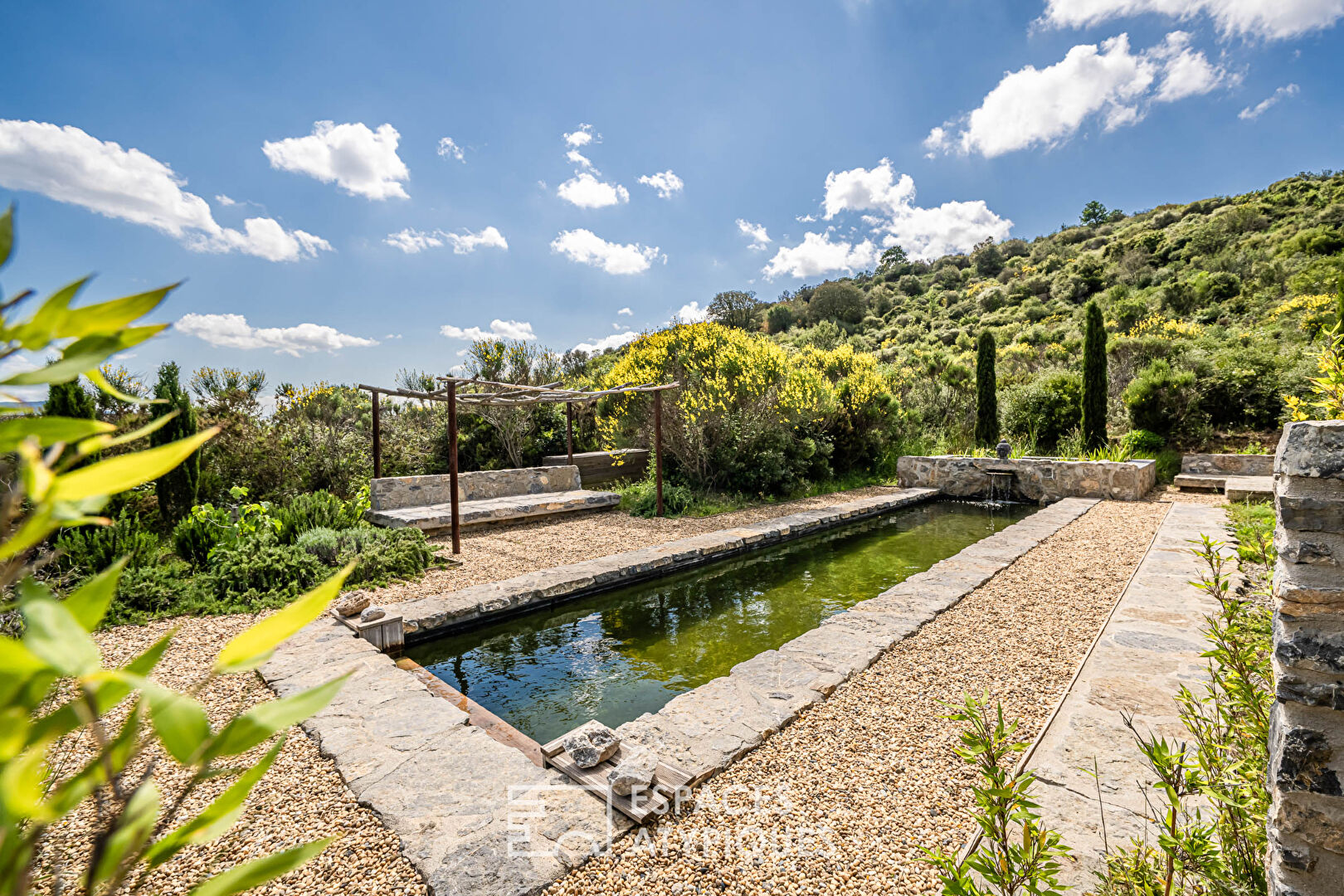 Située en plein coeur des Corbières sauvages et vigneronnes dans un site Natura 2000, véritable patrimoine naturel remarquable, cette propriété dévoile plus de 300 m2 et offre un cadre de vie exceptionnel avec une vue panoramique et imprenable sur le Mont Canigou.