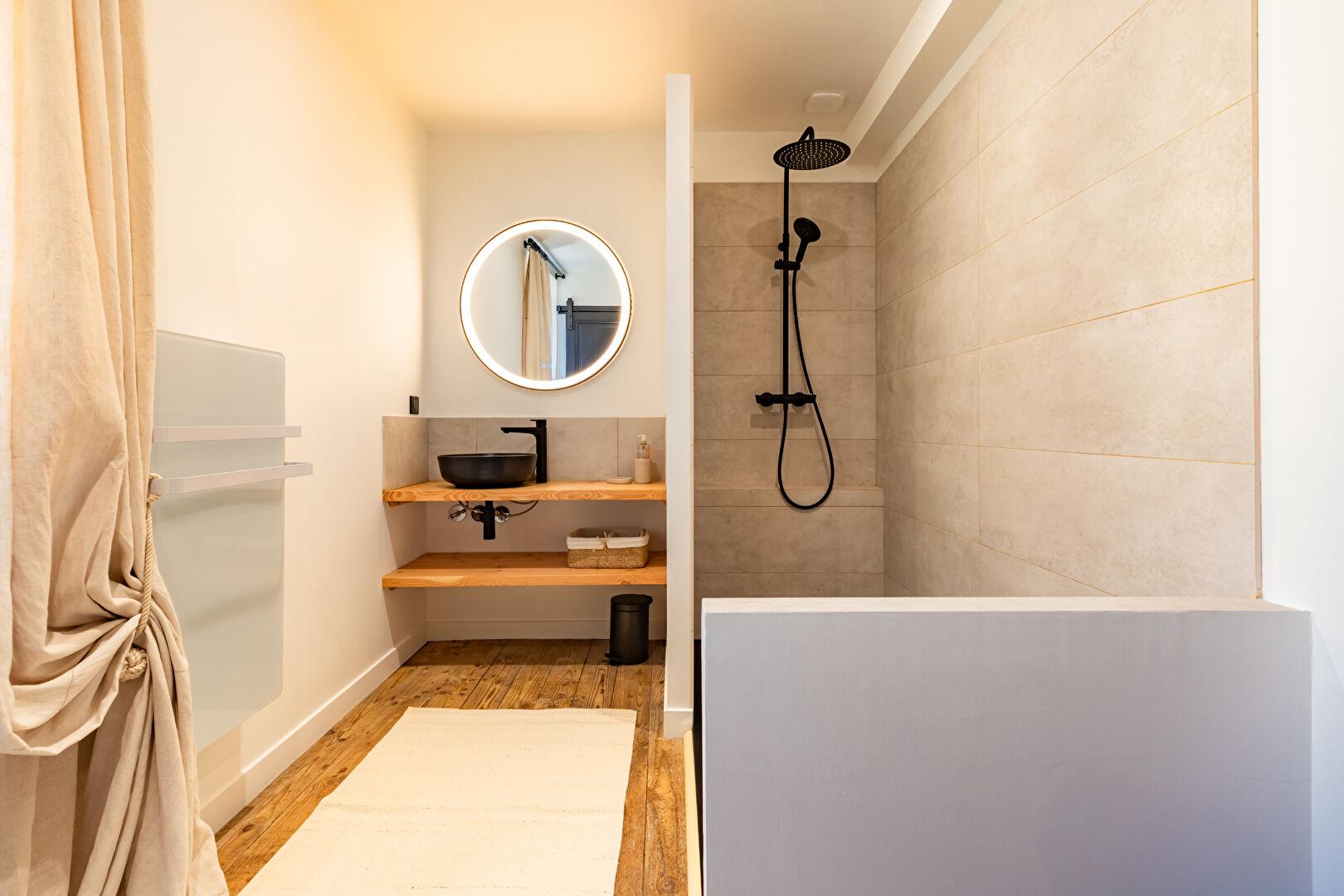 Rénovée avec des matériaux de grande qualité, incarne une alliance réussie entre charme de l’ancien et lignes contemporaines. Discrète depuis la rue, elle dévoile un intérieur chaleureux sublimé par la pierre apparente, les poutres anciennes et un travail soigné sur le bois.
