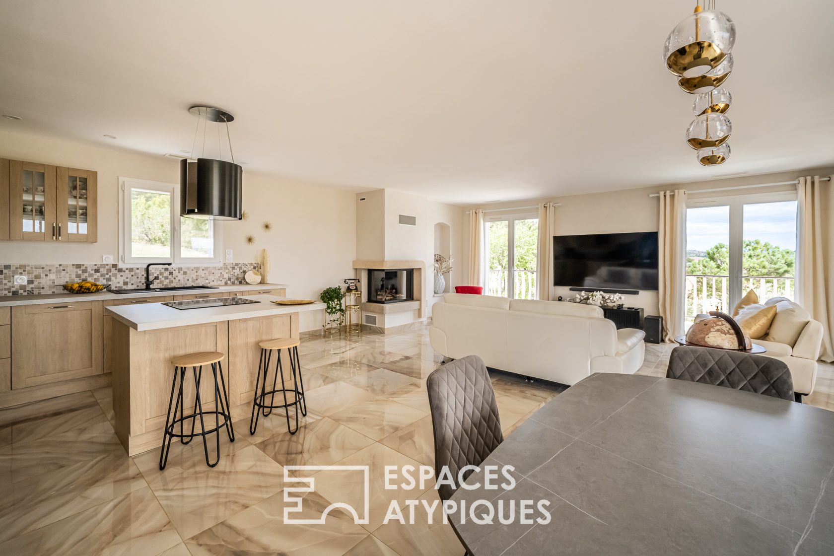 Perché tel un gardien surplombant le village, ce refuge offre une vue à couper le souffle, un spectacle à chaque instant. Défiant les lois de l’architecture, il se déploie totalement de plain-pied, dévoilant ses secrets au premier regard. Ses 4 chambres, ses espaces généreux où le vaste séjour s’entrelace avec une cuisine ouverte, ses recoins secrets comme l’arrière-cuisine, créent une symphonie de confort et de praticité.