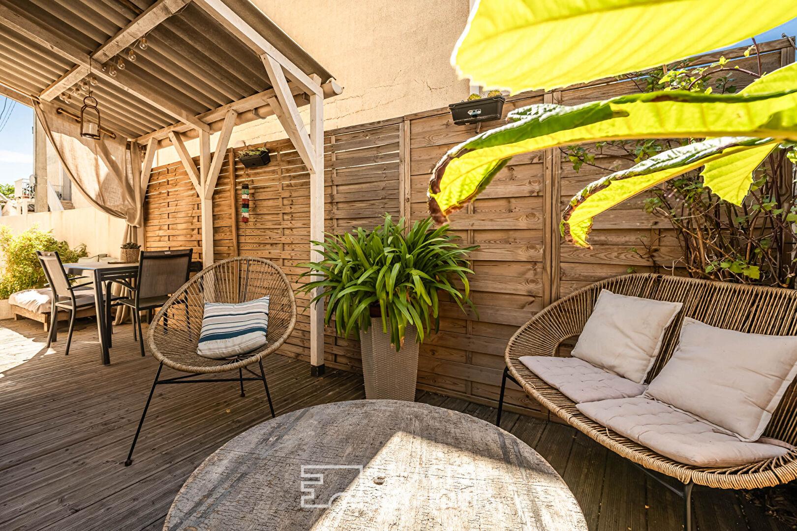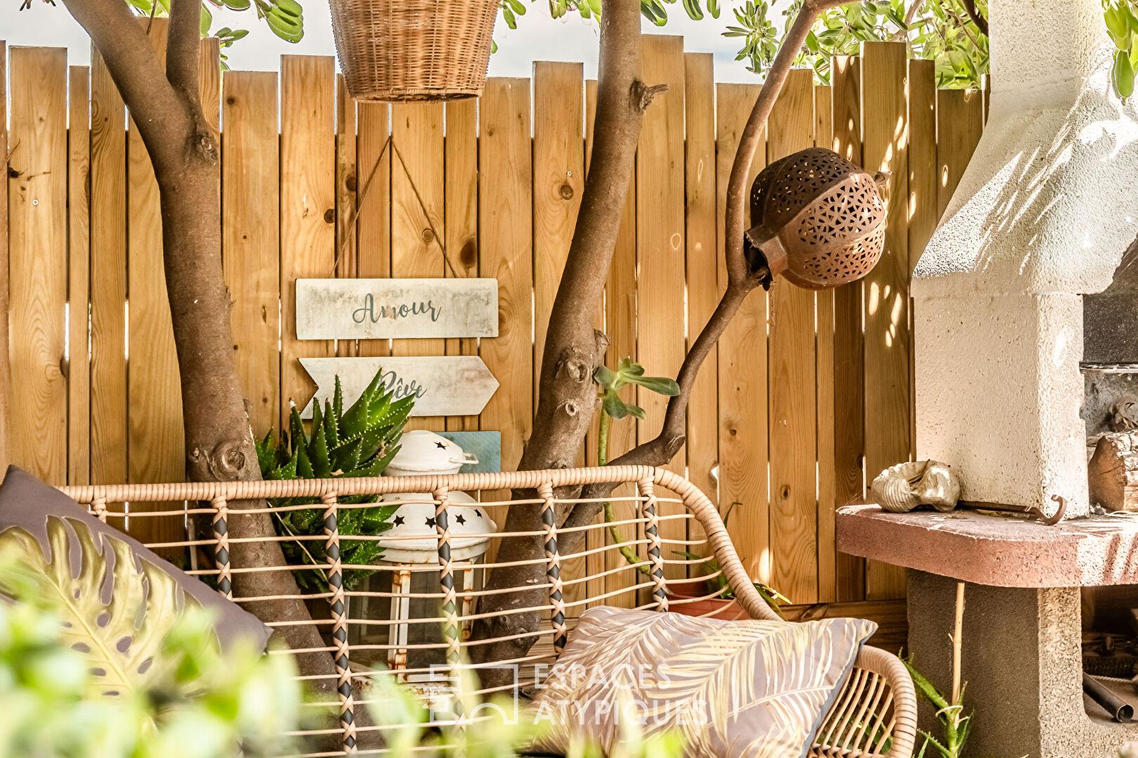 Chaque espace extérieur a été soigneusement aménagé pour favoriser un climat harmonieux, avec coin repas, salon de jardin, barbecue maçonné, point d’eau et prise électrique. Le caractère intime et sécurisé, permet de profiter pleinement d’un environnement végétalisé propice au ressourcement en toute sérénité.