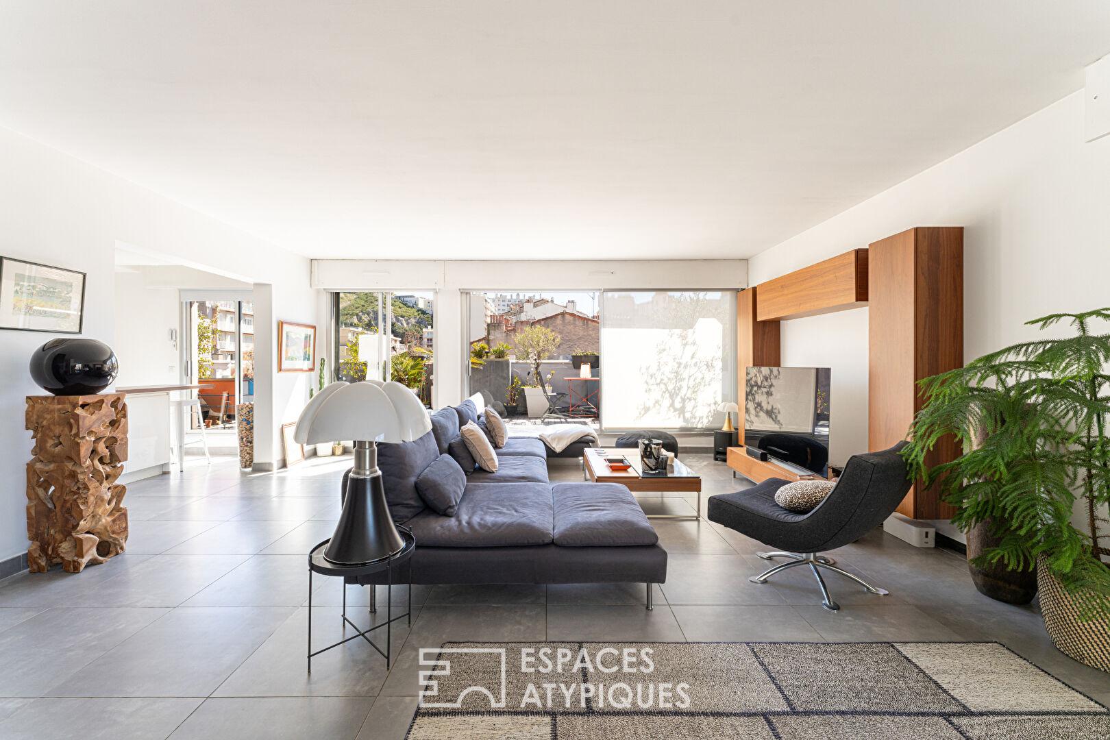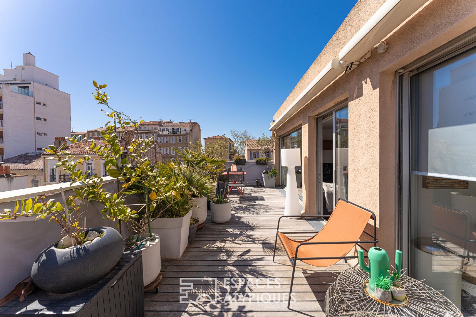 Cet appartement s’adresse à des acquéreurs à la recherche d’un lieu de vie structuré, lumineux, avec extérieurs et vues, au coeur d’un des quartiers les plus emblématiques de Marseille.