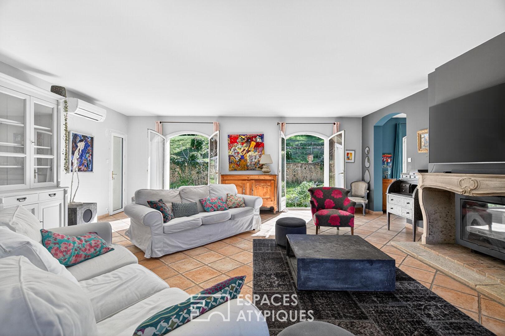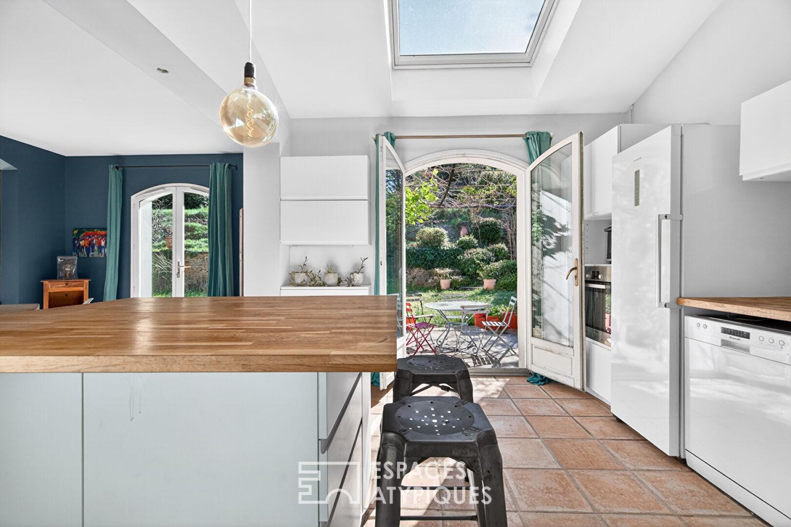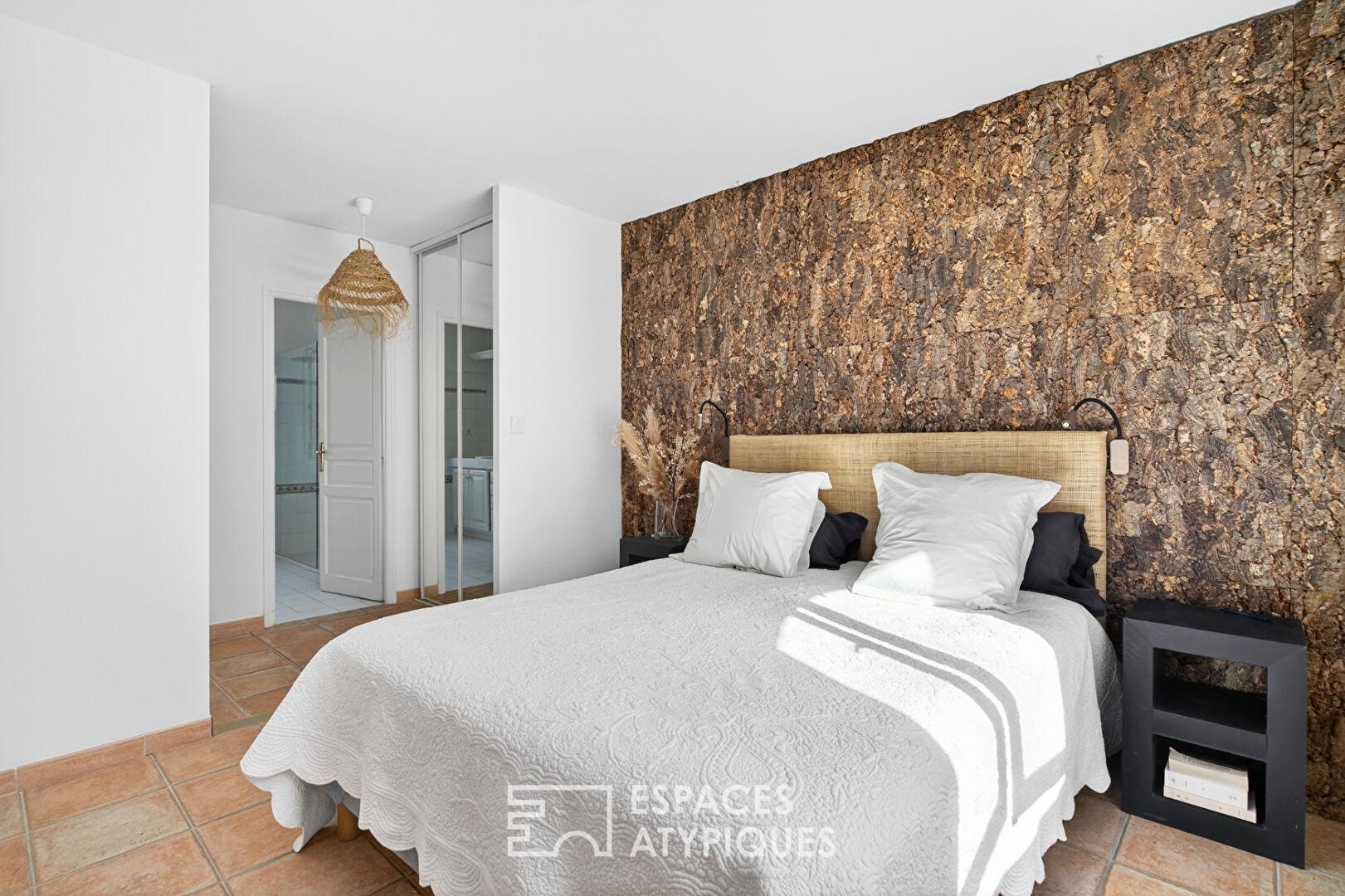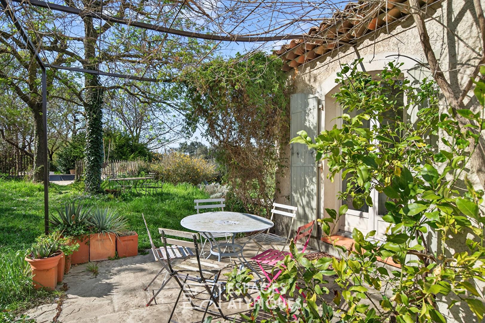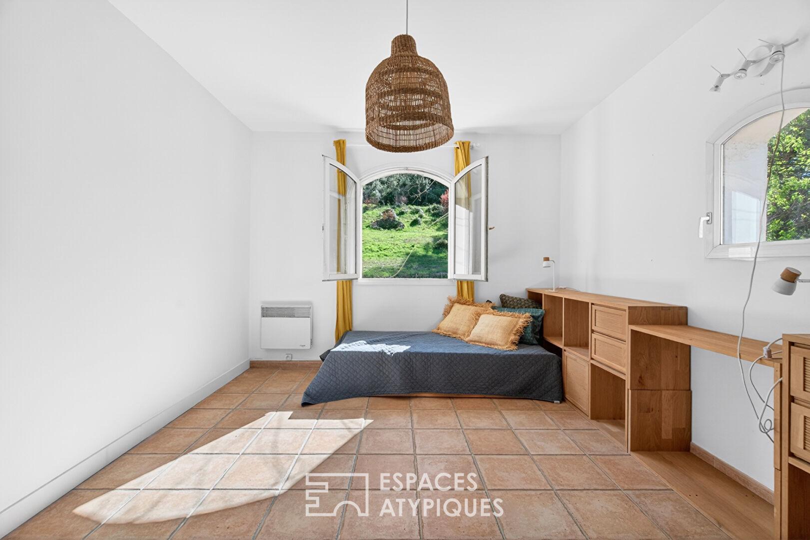 Le jardin, arboré d’essences locales avec des oliviers, des pins, des cyprès et des lauriers, constitue une vraie campagne méditerranéenne typique à l’abri des regards et assure une relation permanente entre le bâti de tradition et son environnement végétal exceptionnel.