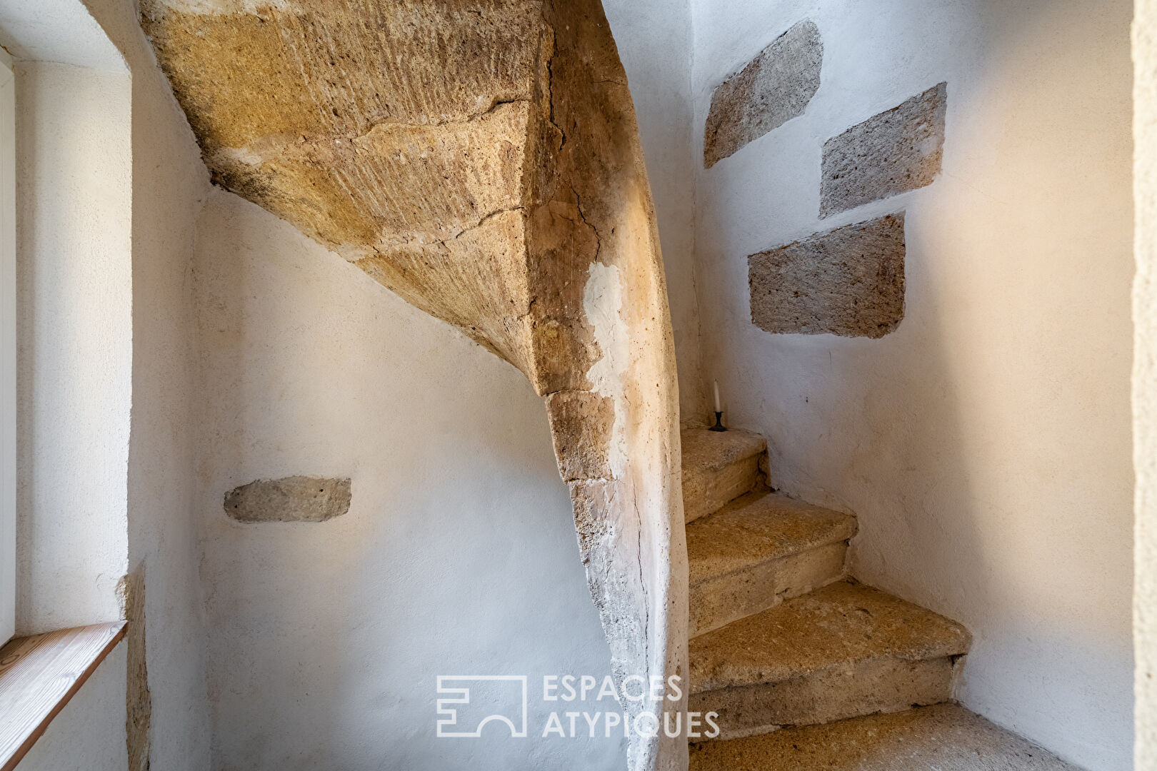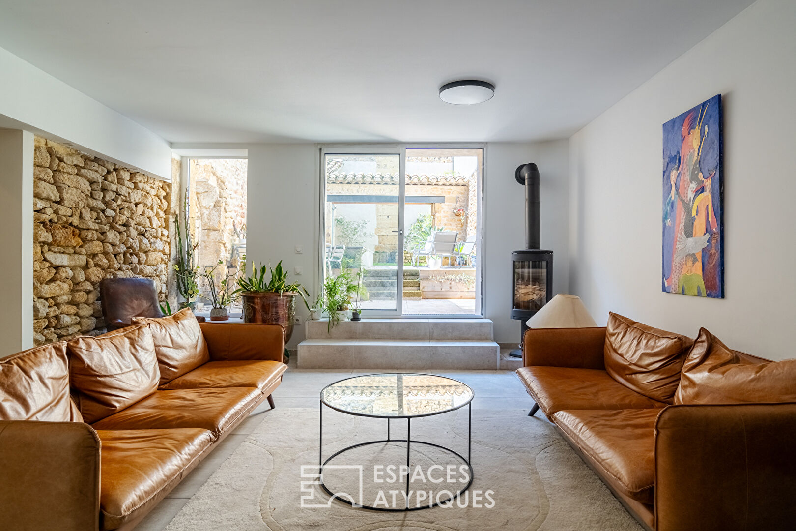 Nichée dans le centre historique de Grans, cette demeure atypique de 215 m² résulte de l’union harmonieuse de deux maisons de village datant des XVIe et XVIIIe siècles. Alliant charme d’antan et confort contemporain, elle dévoile une architecture singulière où la pierre, le bois et l’acier se marient avec élégance.