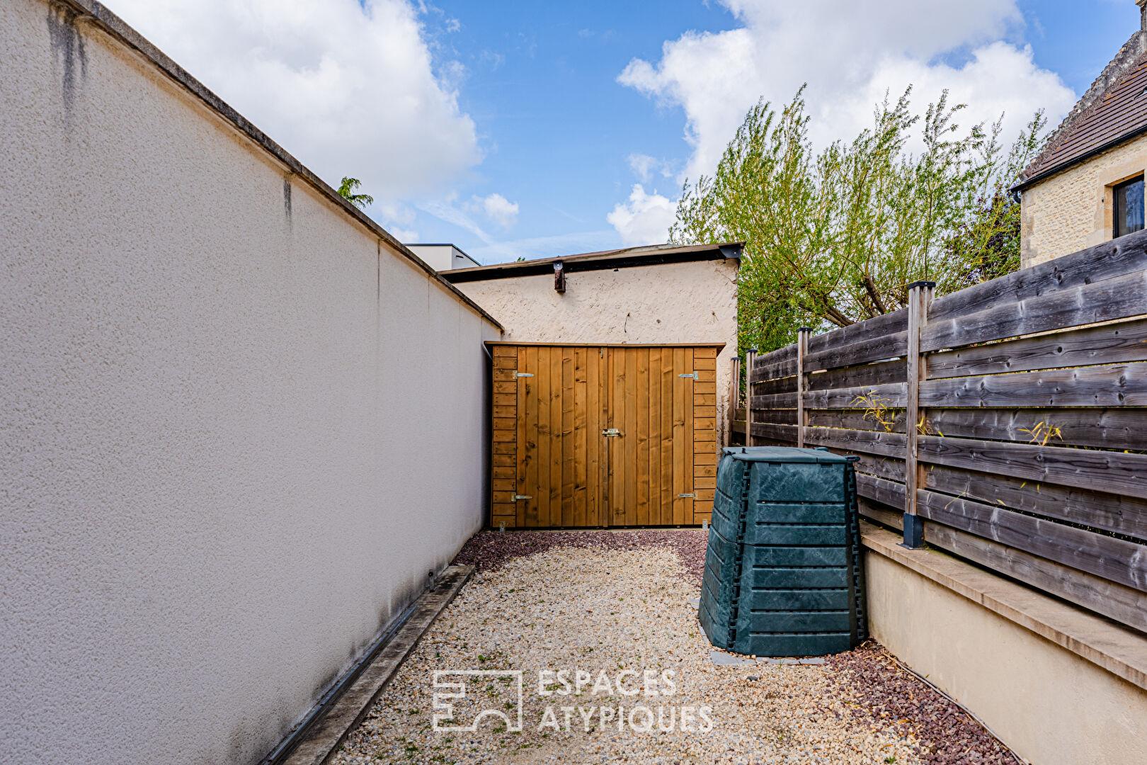Un jardin clos exposé sud d’environ 80 m², un abri de jardin pour les vélos ou le stockage et une place de stationnement avec portail motorisé complètent ce refuge à l’homogénéité architecturale parfaite.