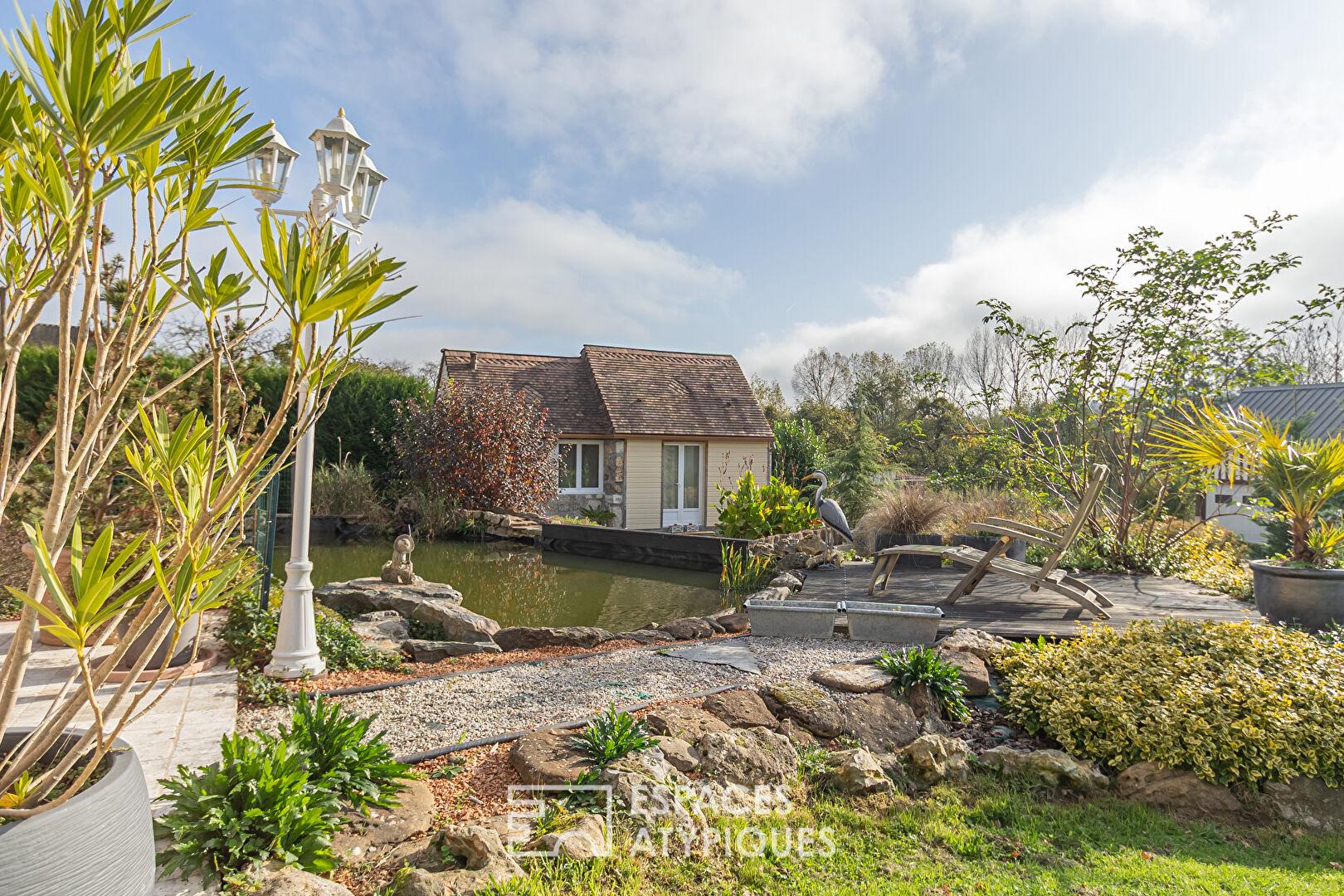 Le terrain paysager de 4 000 m², parfaitement entretenu, est une invitation à la détente avec son bassin, son portail électrique et sa vidéosurveillance. Un parking enrobé et un robot de tonte automatique assurent un confort quotidien appréciable.
