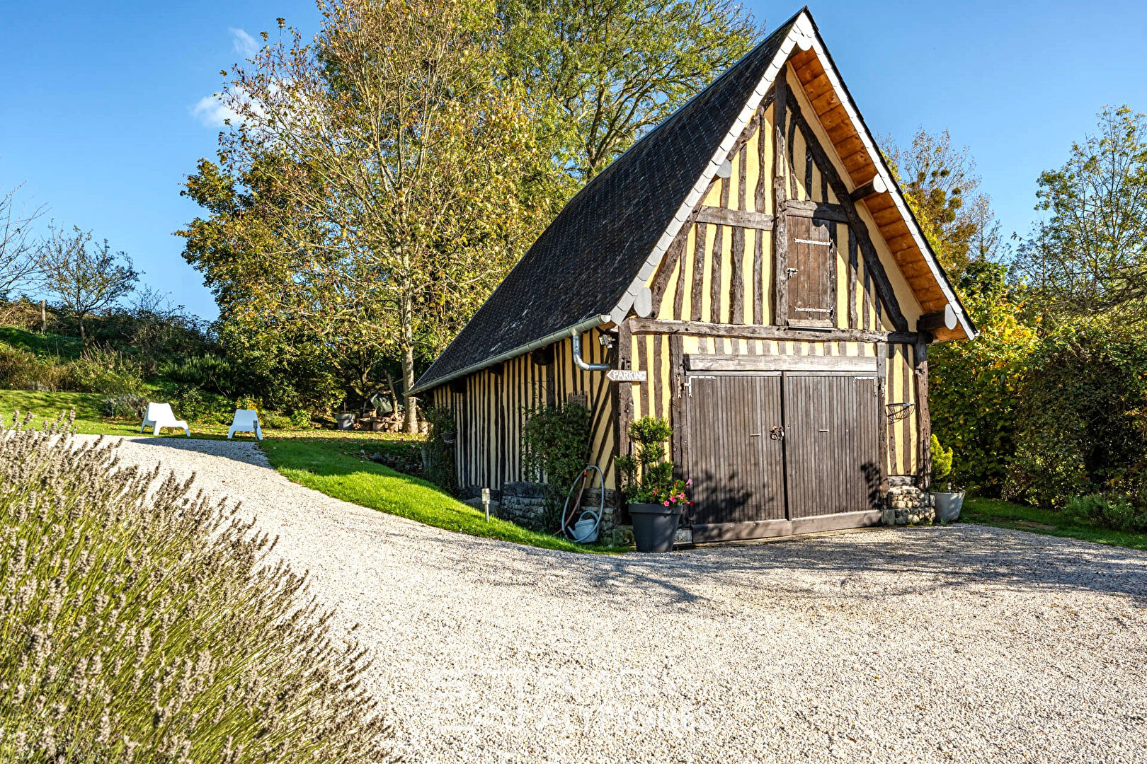 Située à Beuvron-en-auge , au coeur du pays d’auge, pittoresque petit village Augeron classé plus beau village de France, cette charmante propriété composée, d’une maison d’habitation principale avec terrasse et d’un garage indépendant , sur 2 340 m² de terrain clos et arboré , offre un cadre de vie au calme en pleine campagne Normande.