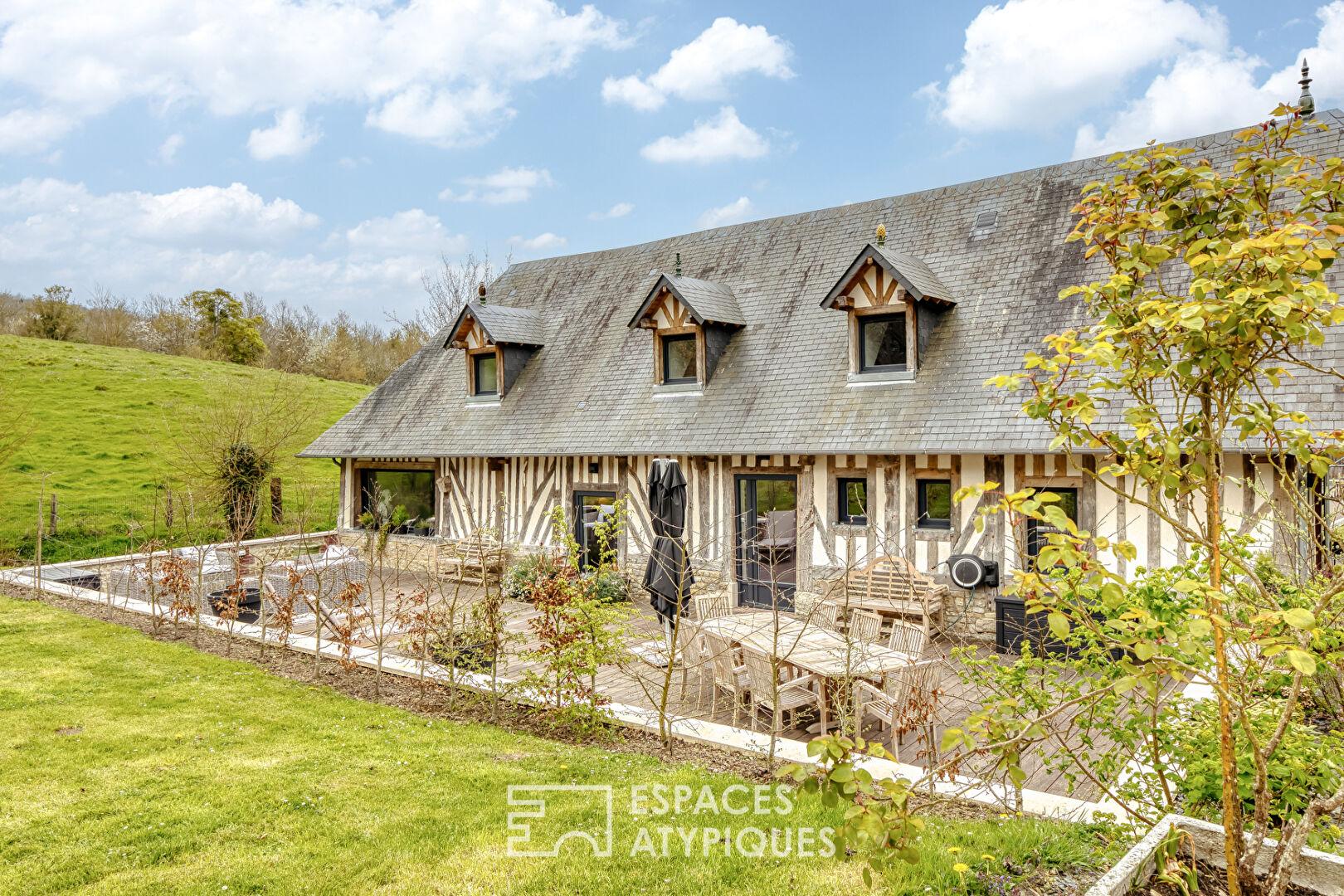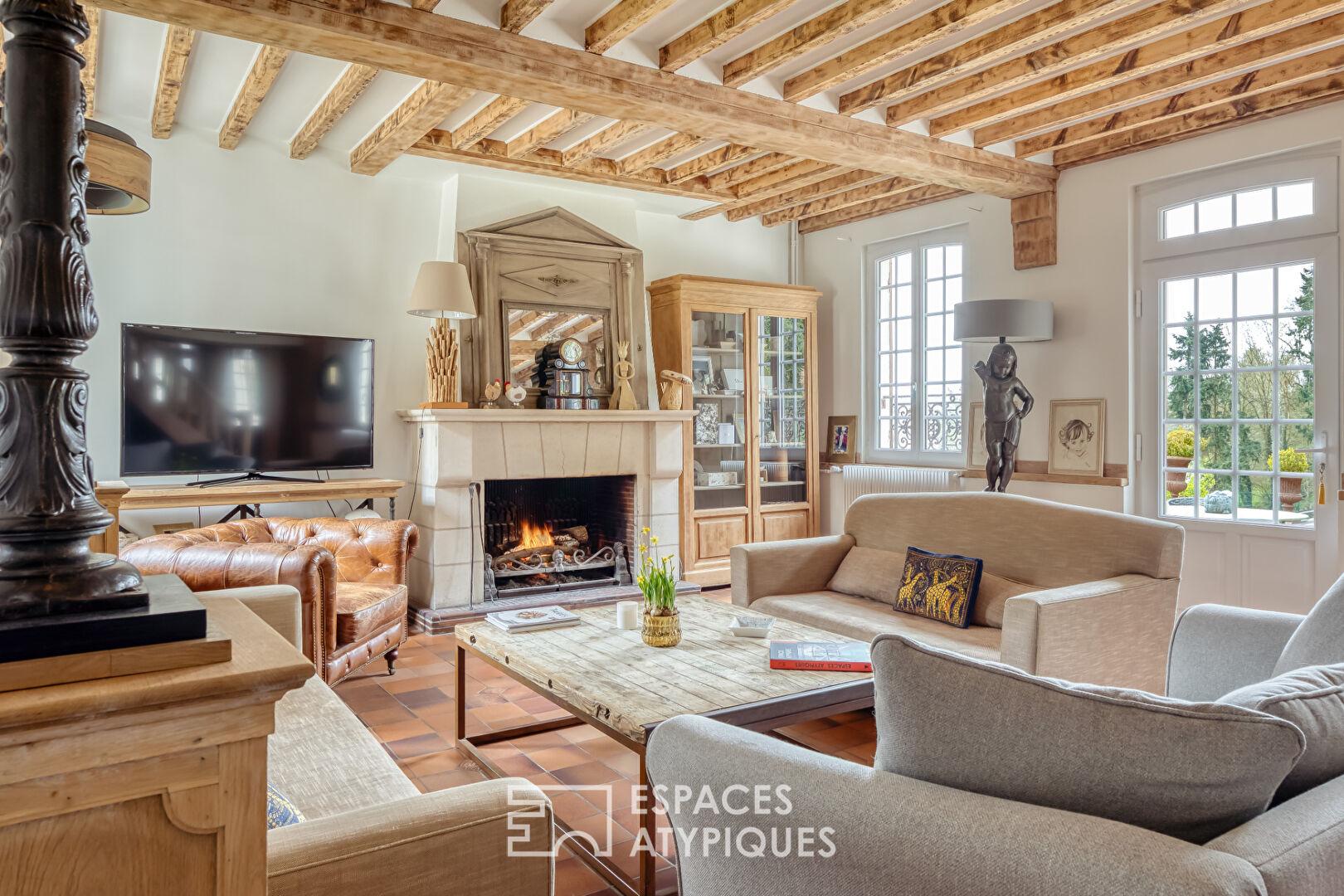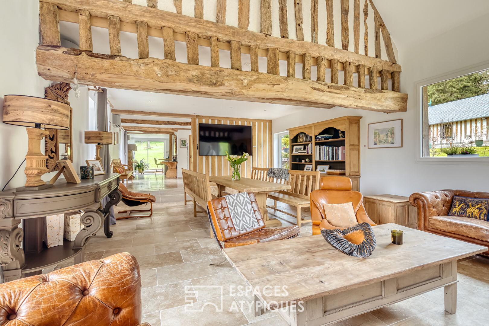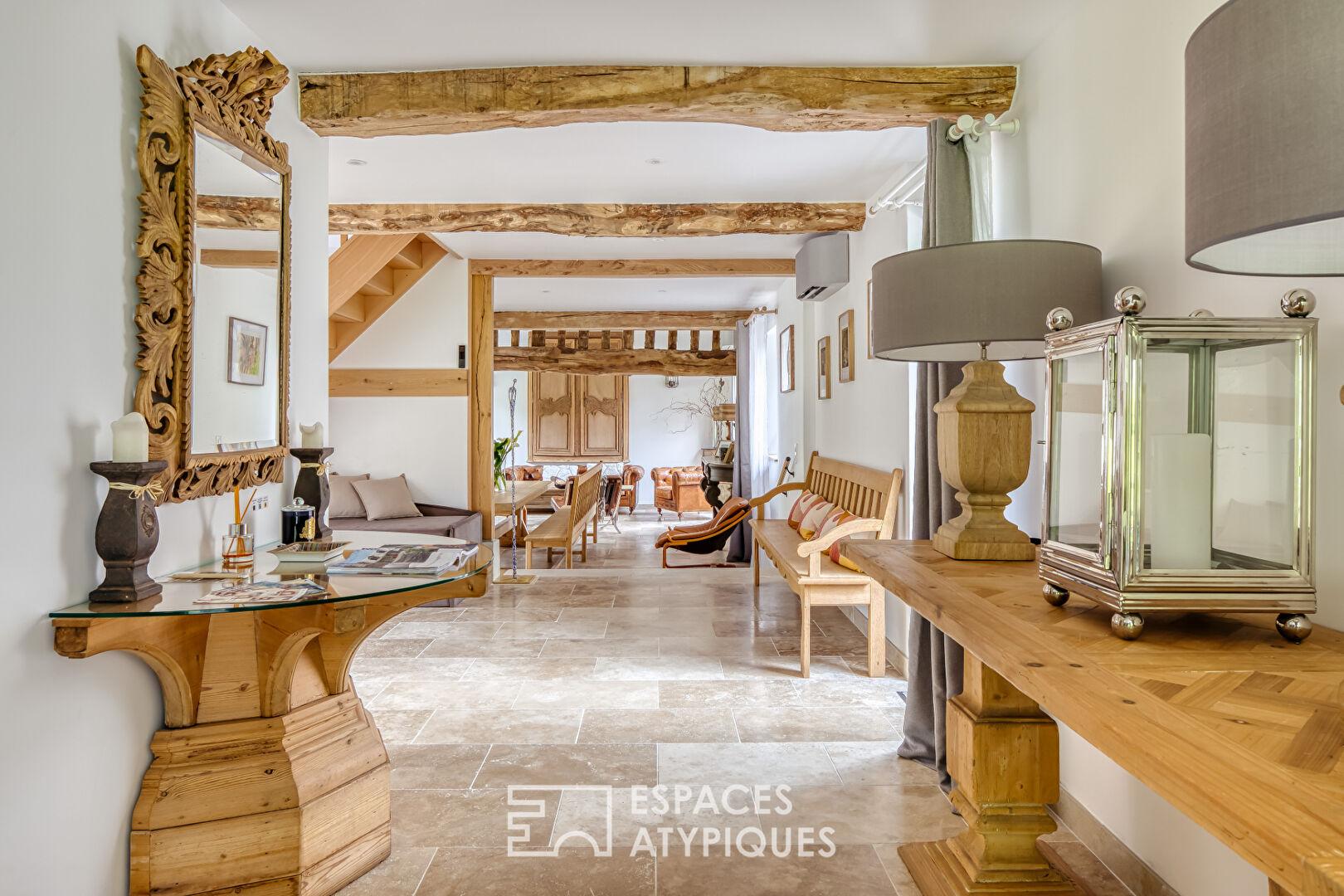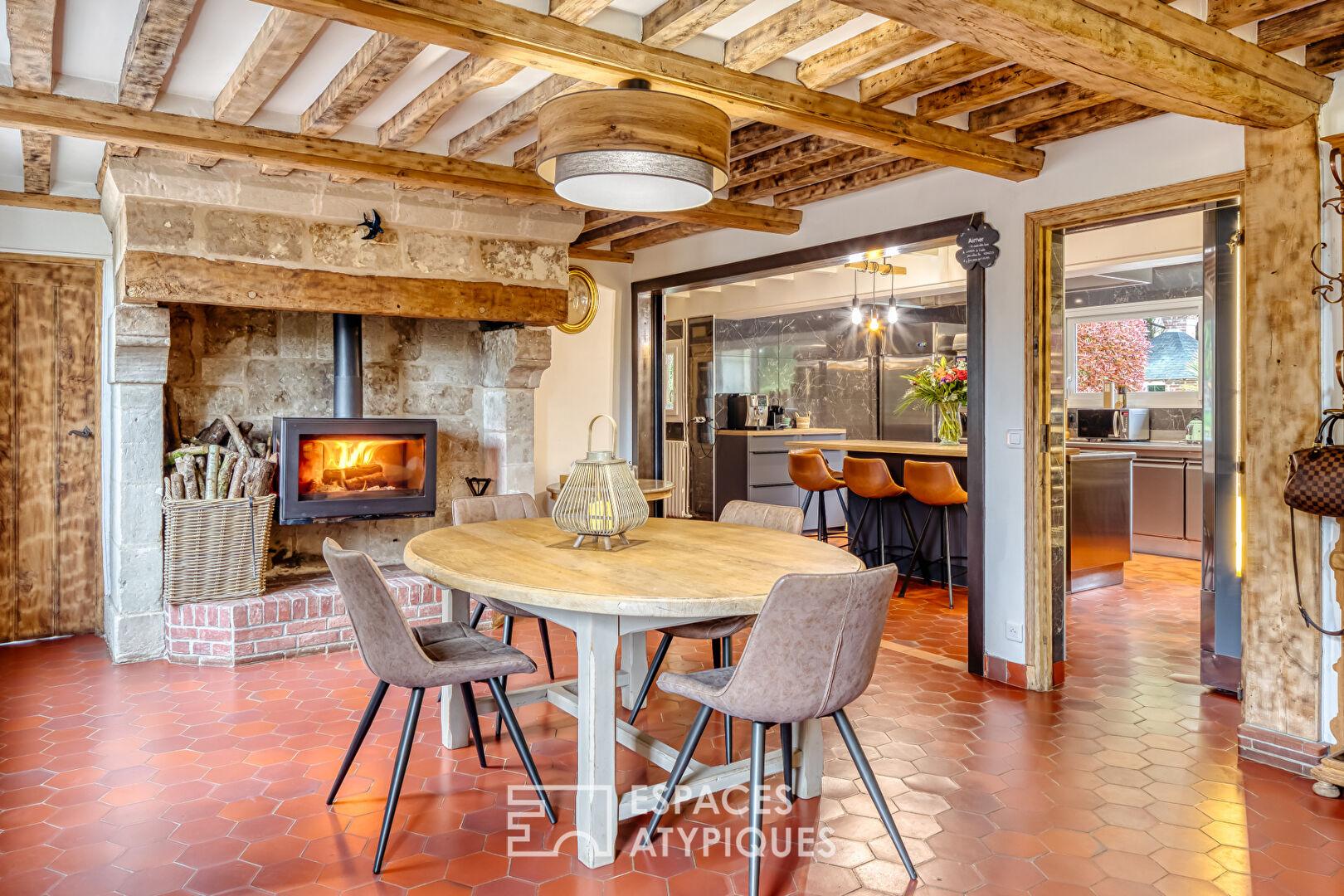 Ensemble immobilier rénové : maison de Maître et ses dépendances à colombages