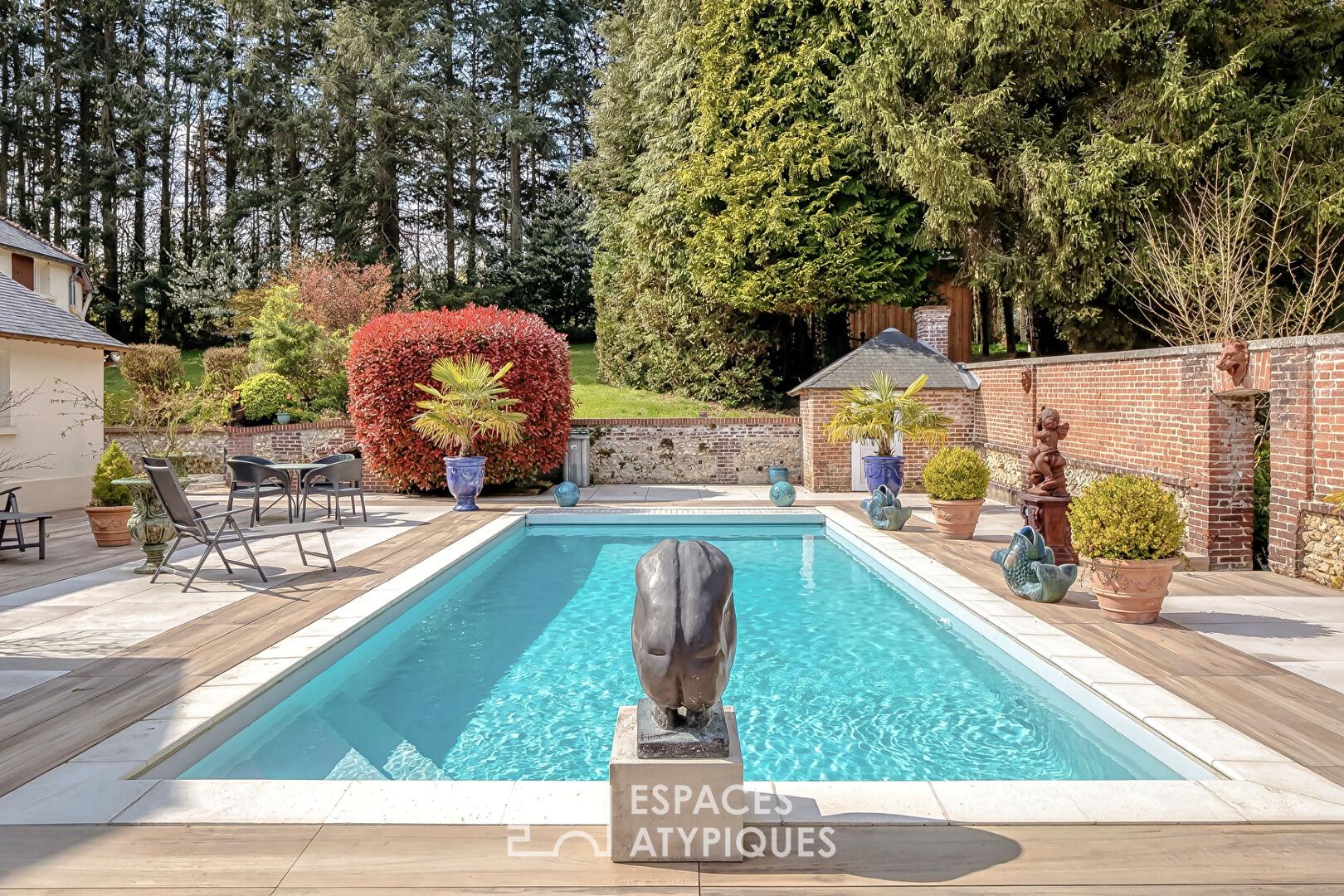 Cette propriété se compose d’une maison de maître, d’une longère à colombages scindée en quatre suites, un gîte et une salle de restauration pour une surface dédiée au confort et à la réception. Un bois, deux piscines, un espace bien-être et un terrain de tennis complètent cet inventaire haut de gamme.