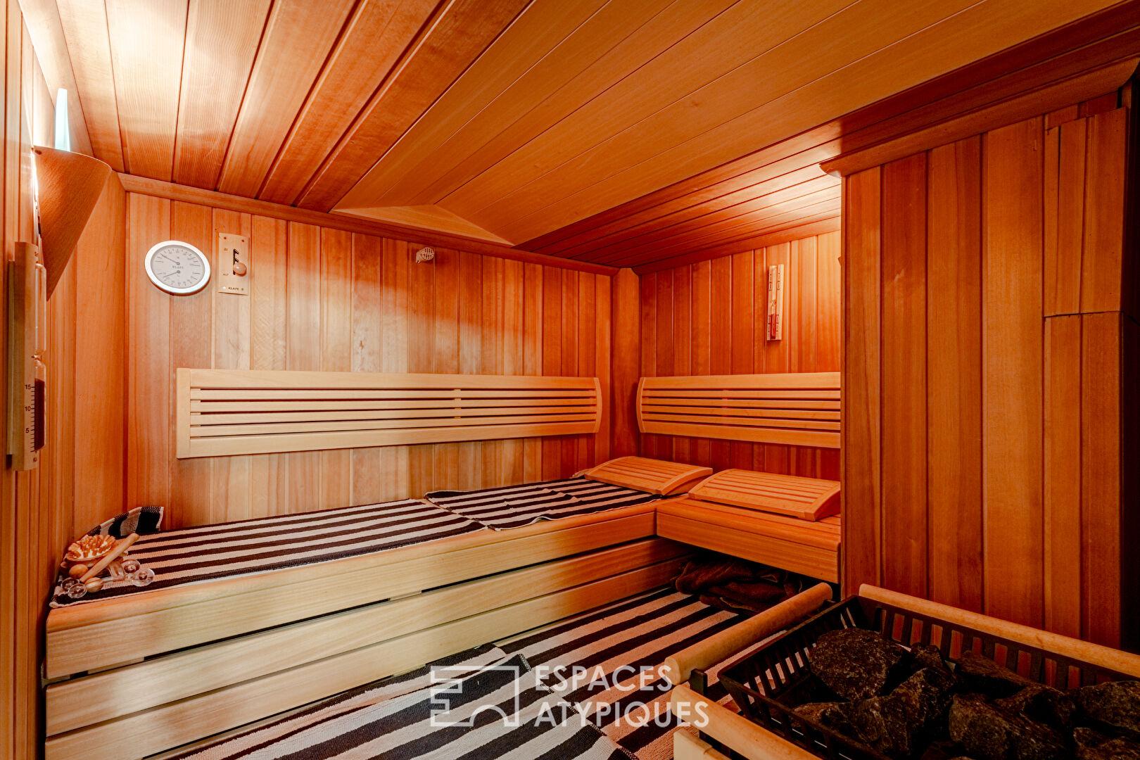 Tout aussi hors normes, le sous-sol est le temple des loisirs : hammam, sauna et espace fitness pour une détente holistique, une cave à vin aménagée pour les dégustations confidentielles, une salle de répétition acoustique dédiée aux passionnés de musique et un vaste garage pour accueillir plusieurs véhicules.