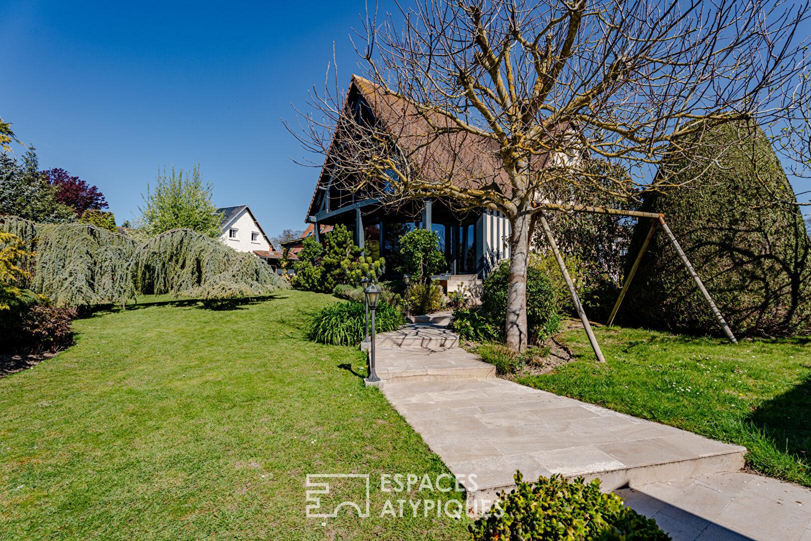 Située à quelques minutes de Caen et des plages de la côte de Nacre, cette magnifique maison d’environ 260 m², a pris place en toute discrétion dans un environnement arboré et privilégié d’environ 1980 m², à l’abri des regards.
