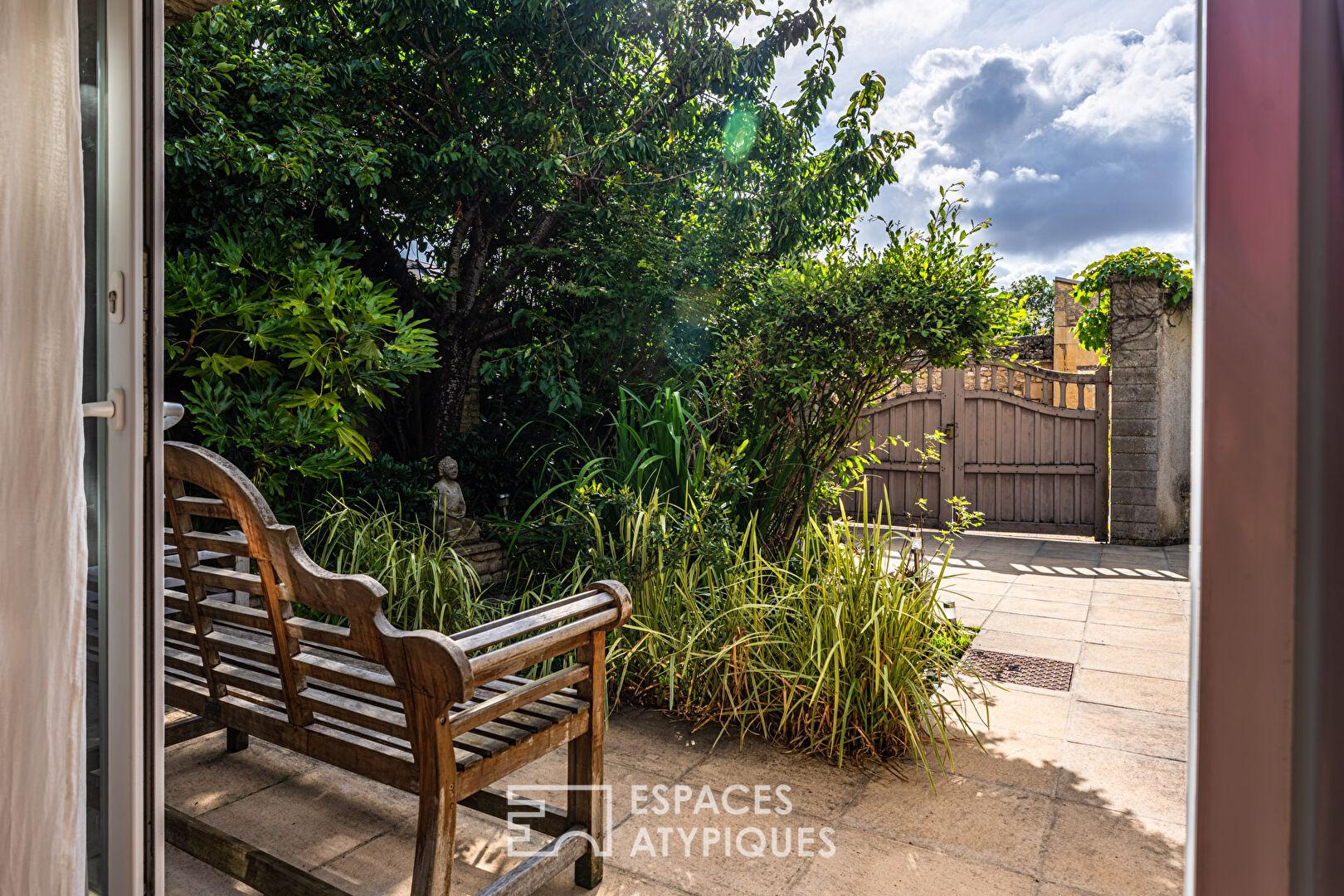 Le mélange des genres cohabite avec les trésors de Chine comme si on assemblait des bouts de souvenirs de voyages. Pierre de Caen, cheminées d’époque et poutres apparentes sont au rendez-vous pour faire écho à l’histoire des lieux et contribuer à la pérennité de cette magnifique bâtisse.