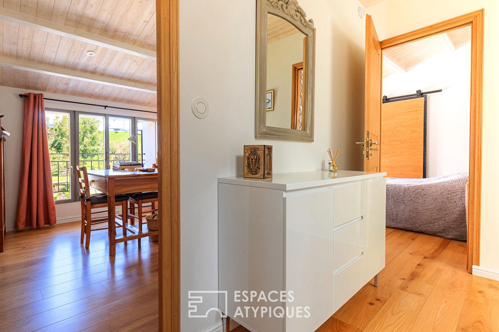 Pour une fonctionnalité optimale, une buanderie, un local vélo et un vaste atelier pouvant devenir un studio complètent cette maison à la décoration et aux finitions soignées.