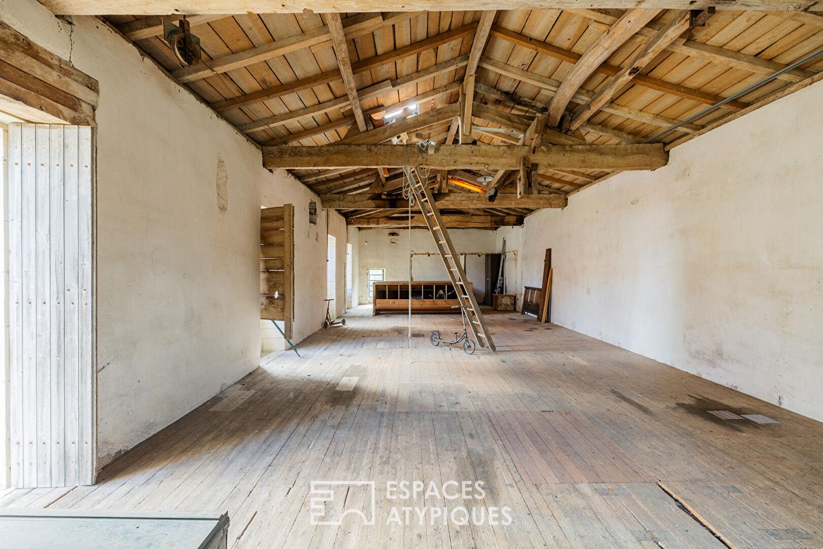 Attenant à l’habitation, le moulin d’origine développe environ 280 m2 répartis sur deux niveaux et constitue un véritable potentiel pour les amoureux de patrimoine souhaitant imaginer un projet d’aménagement complémentaire. Le rez-de-chaussée accueille notamment une pièce de 42 m2, une pièce de 25 m2 où se trouve la turbine hydraulique toujours fonctionnelle, un chai ainsi qu’une cave, offrant de nombreuses possibilités de réhabilitation.
