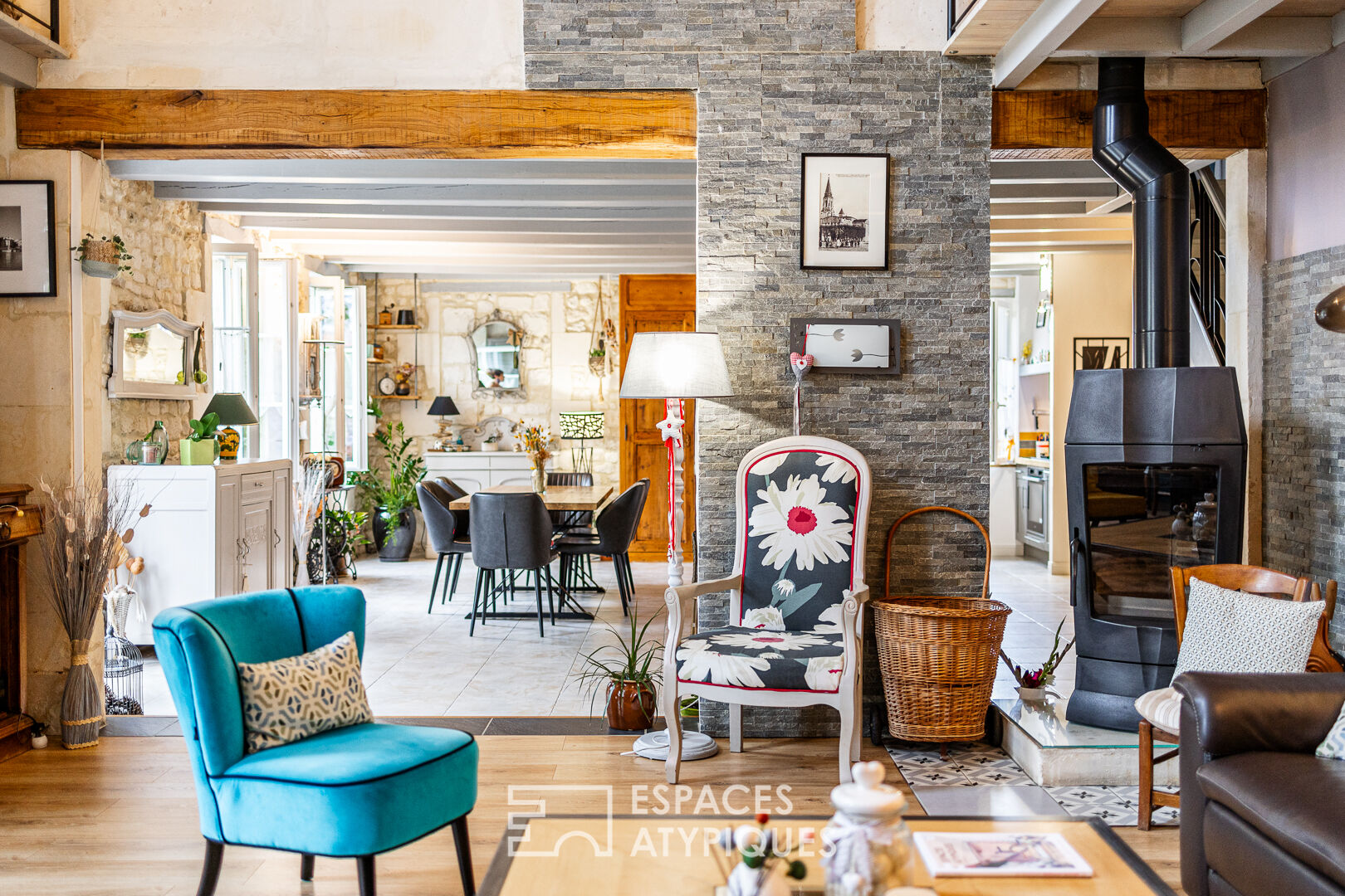 Sa façade en pierre de taille de la carrière de Tesson cache environ 160 m2 habitables et des volumes confortables et lumineux.