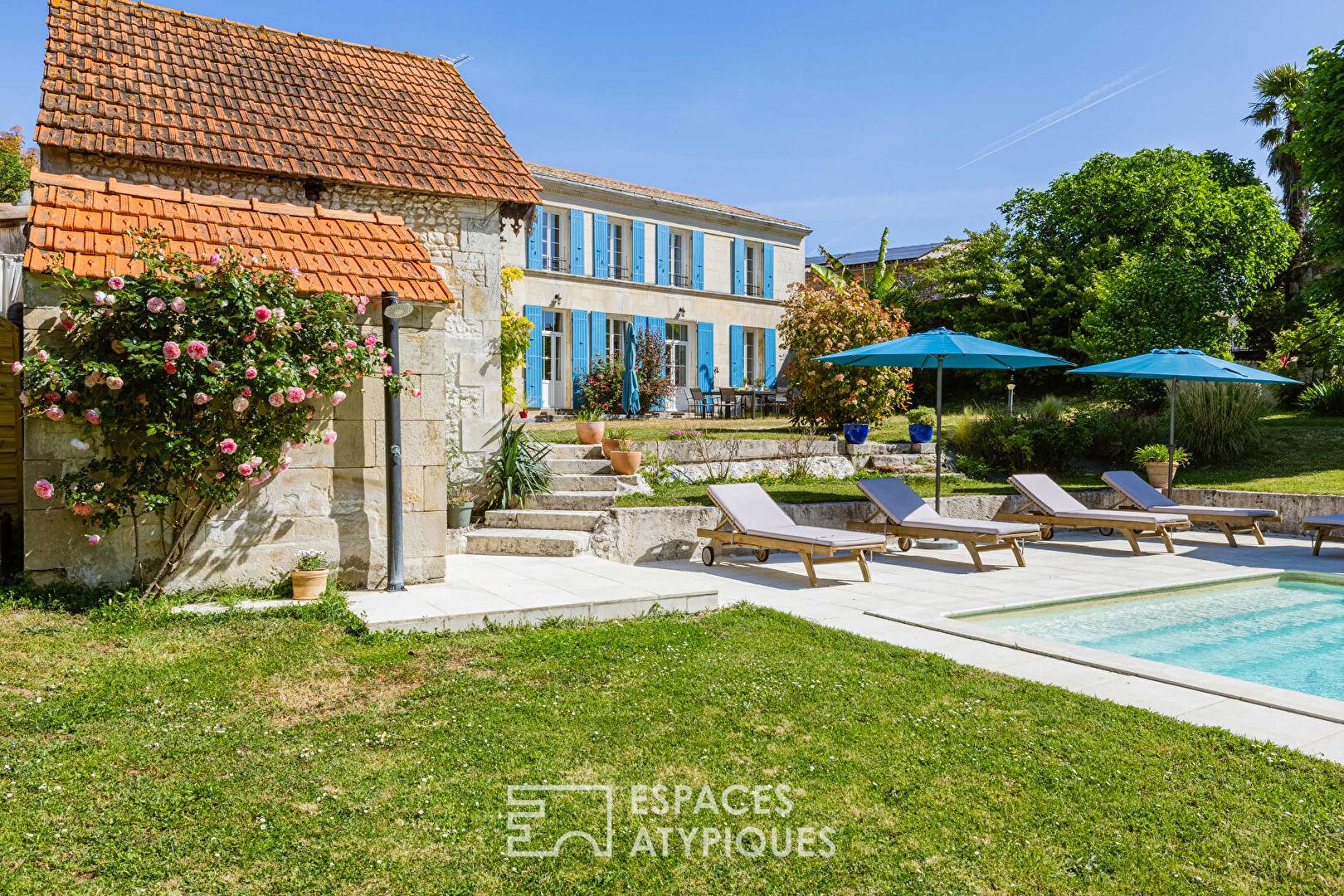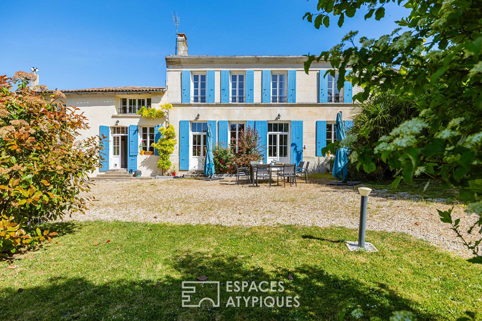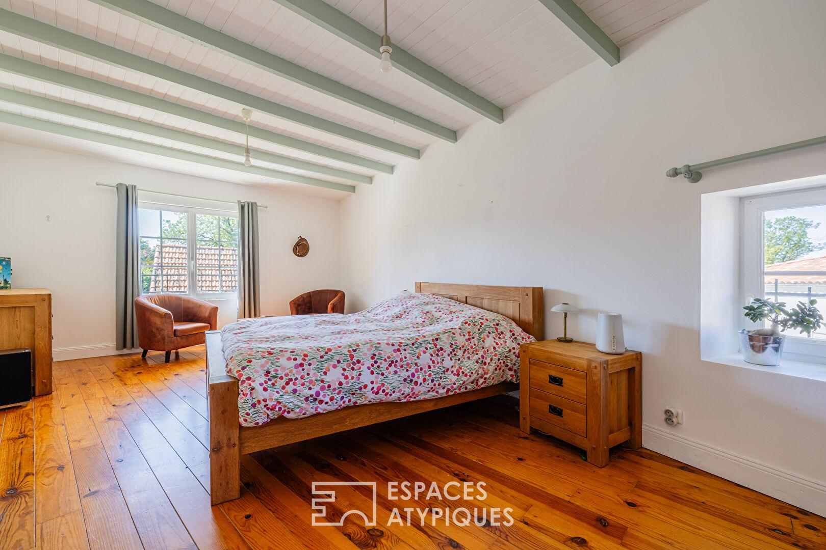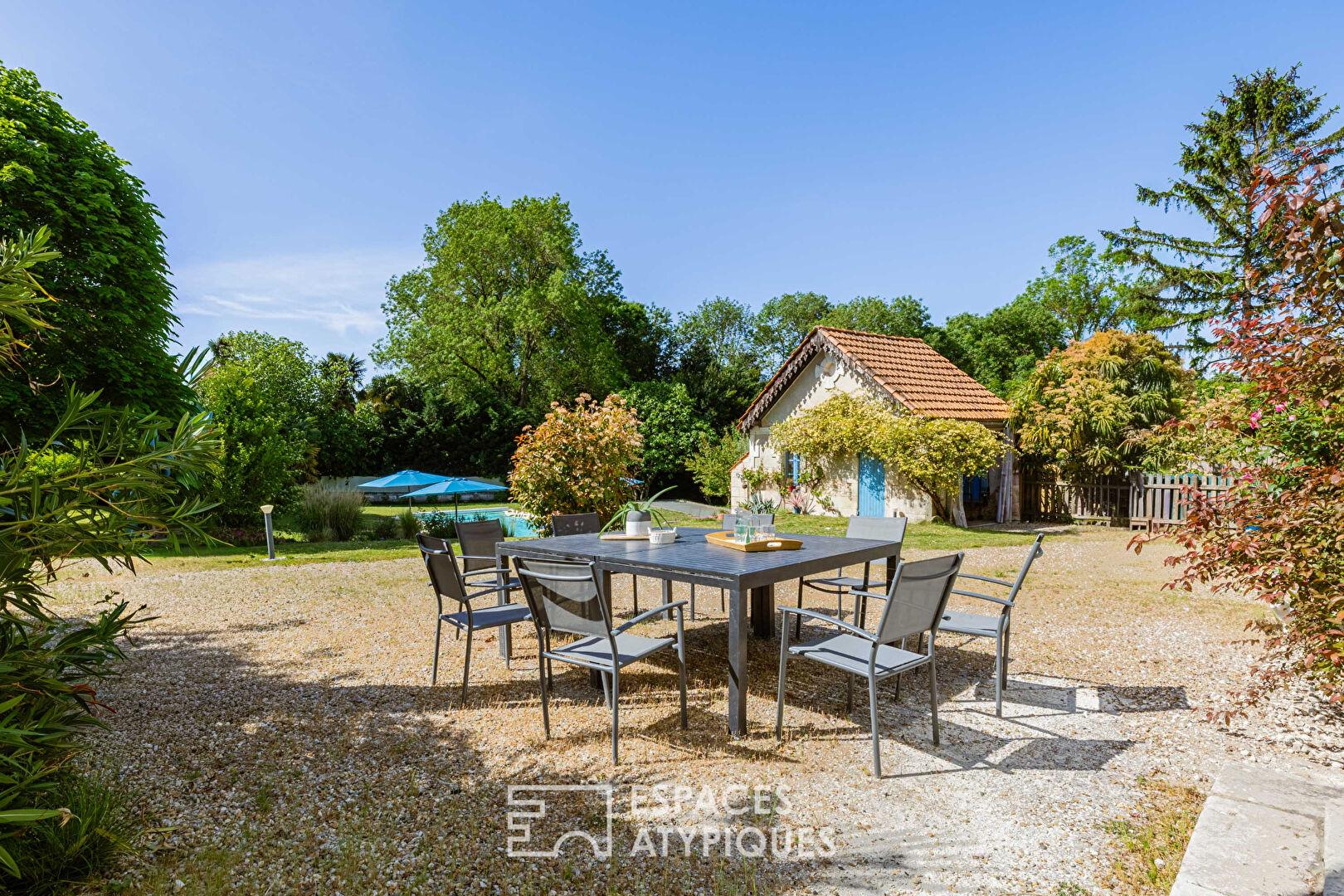 À l’abri des regards, au coeur d’un environnement préservé typique de l’estuaire de la Gironde, entre Mortagne-sur-Gironde et Arces, ce charmant ancien domaine viticole déploie aujourd’hui tout son potentiel dans une configuration pensée entre résidence principale et activité d’accueil.