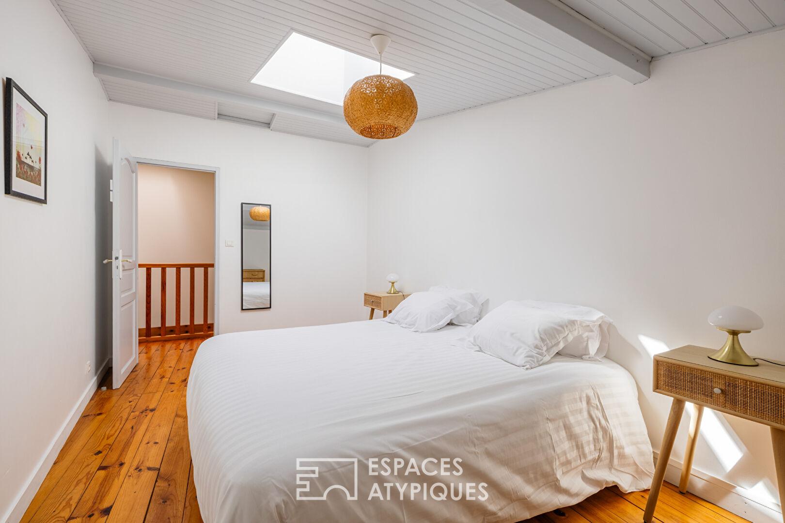 La maison principale, d’environ 170 m2, offre une atmosphère chaleureuse où les matériaux anciens dialoguent avec une rénovation respectueuse. Les volumes s’organisent autour d’une pièce de vie lumineuse d’environ 30 m2, prolongée par une salle à manger conviviale et une cuisine indépendante. Les poutres apparentes, les murs en pierre et les ouvertures sur le jardin confèrent à l’ensemble une authenticité immédiatement perceptible. L’espace nuit accueille trois chambres, pensées pour une vie familiale confortable.