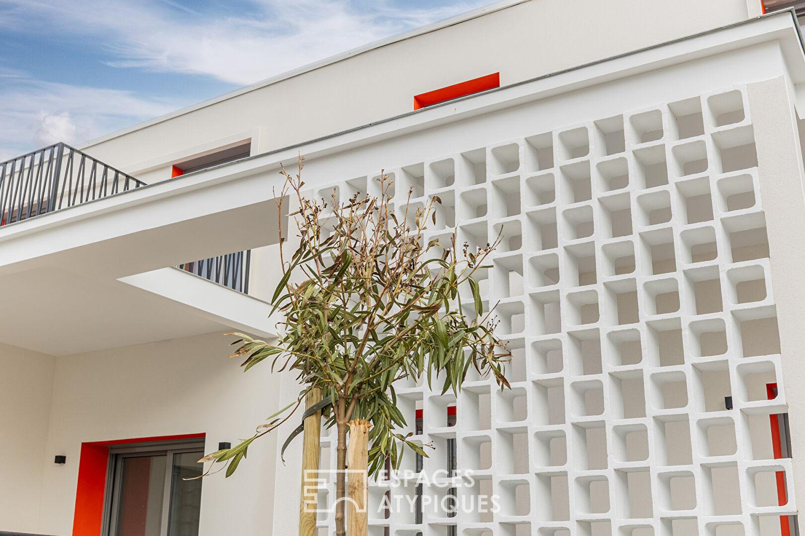 Nichée au coeur de la cité balnéaire de Royan, cette résidence de prestige séduit par sa façade élégante qui reprend avec finesse les codes architecturaux des années 50.