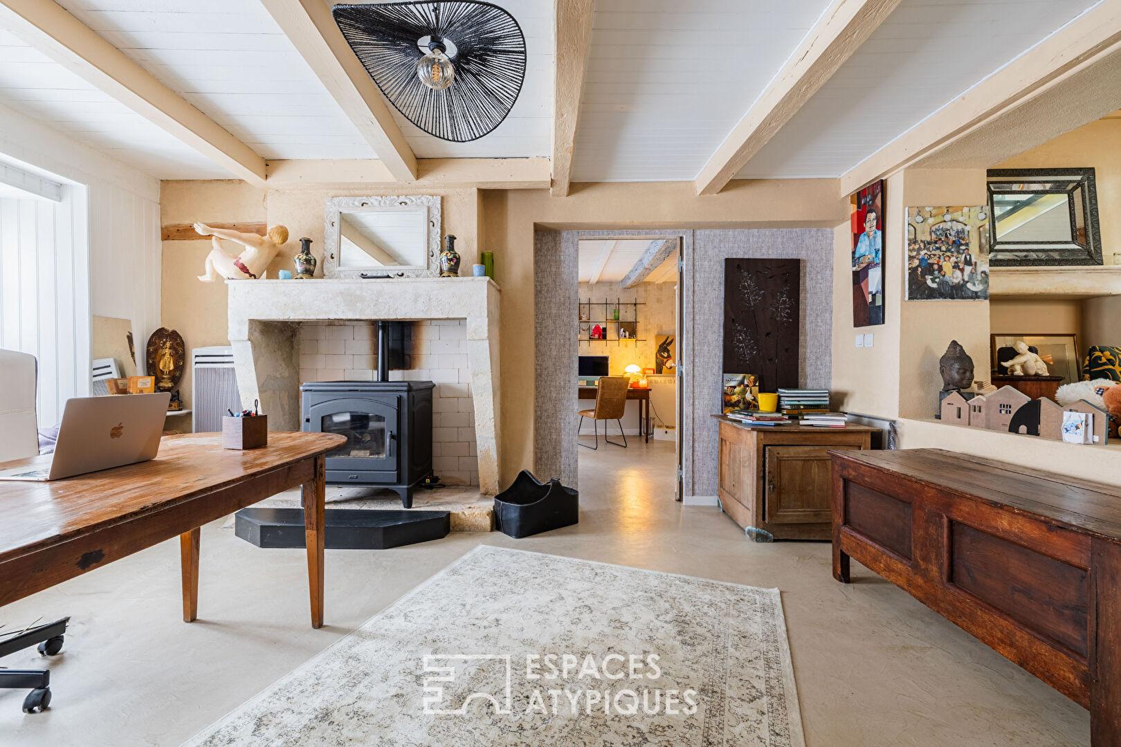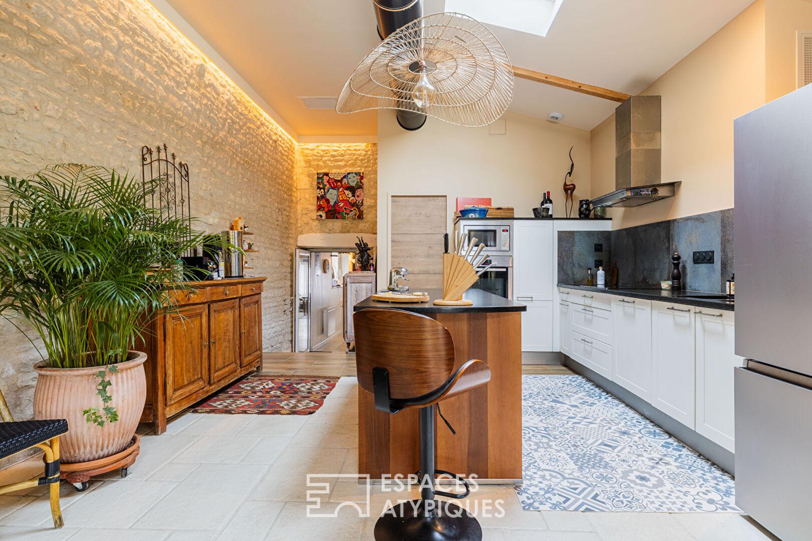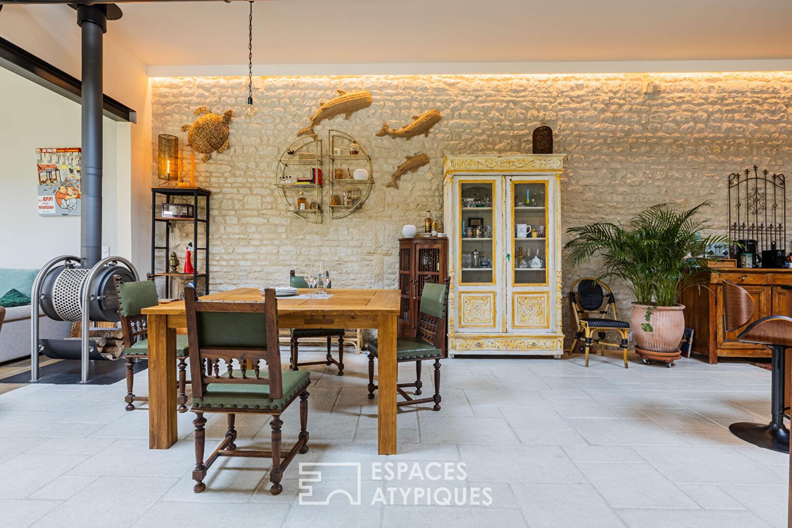 Cette maison ancienne à La Jarne, résolument chaleureuse et conviviale, fera le bonheur des amateurs de jardins paysagés et de vieilles pierres.