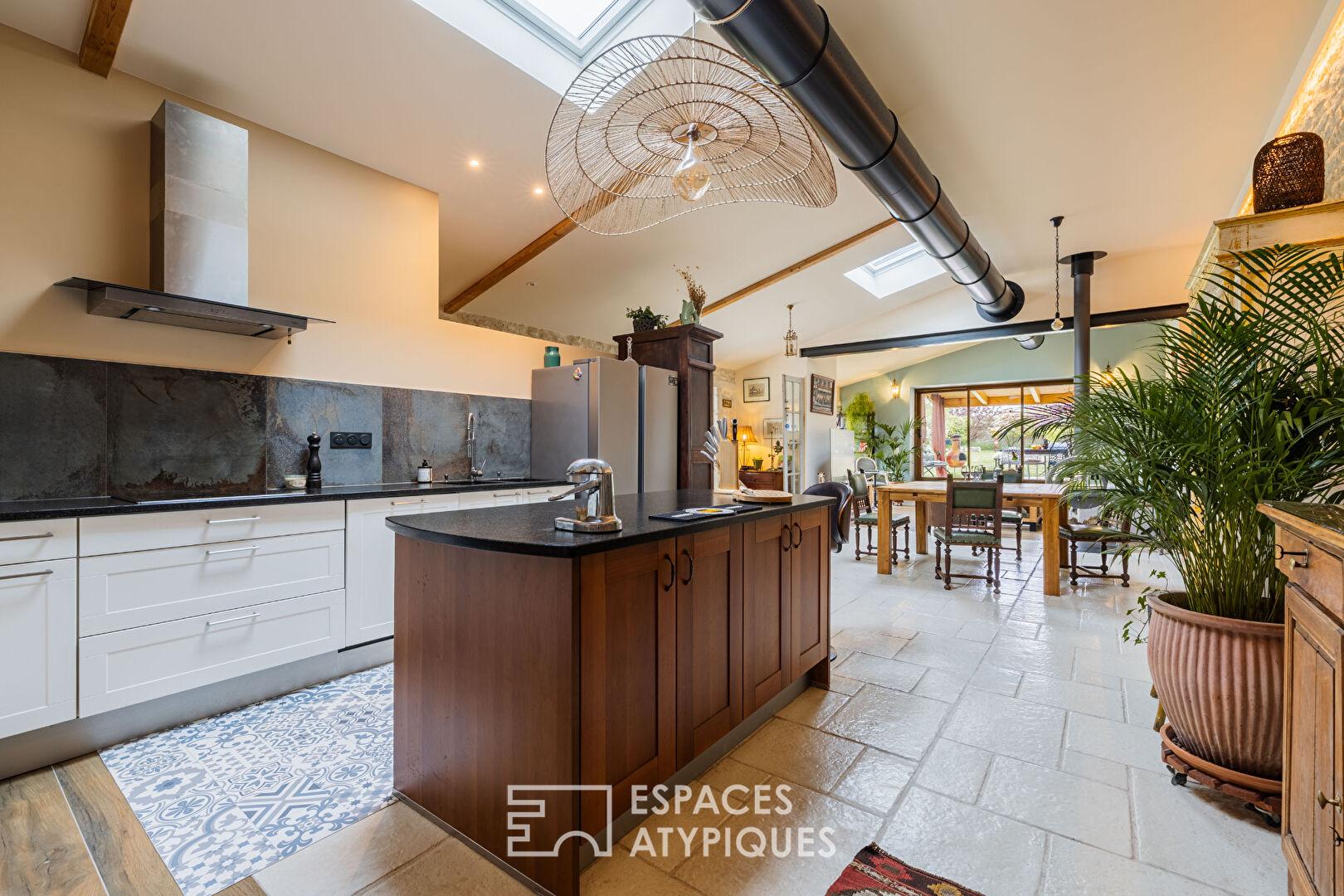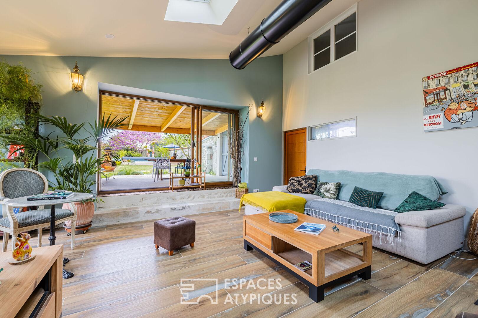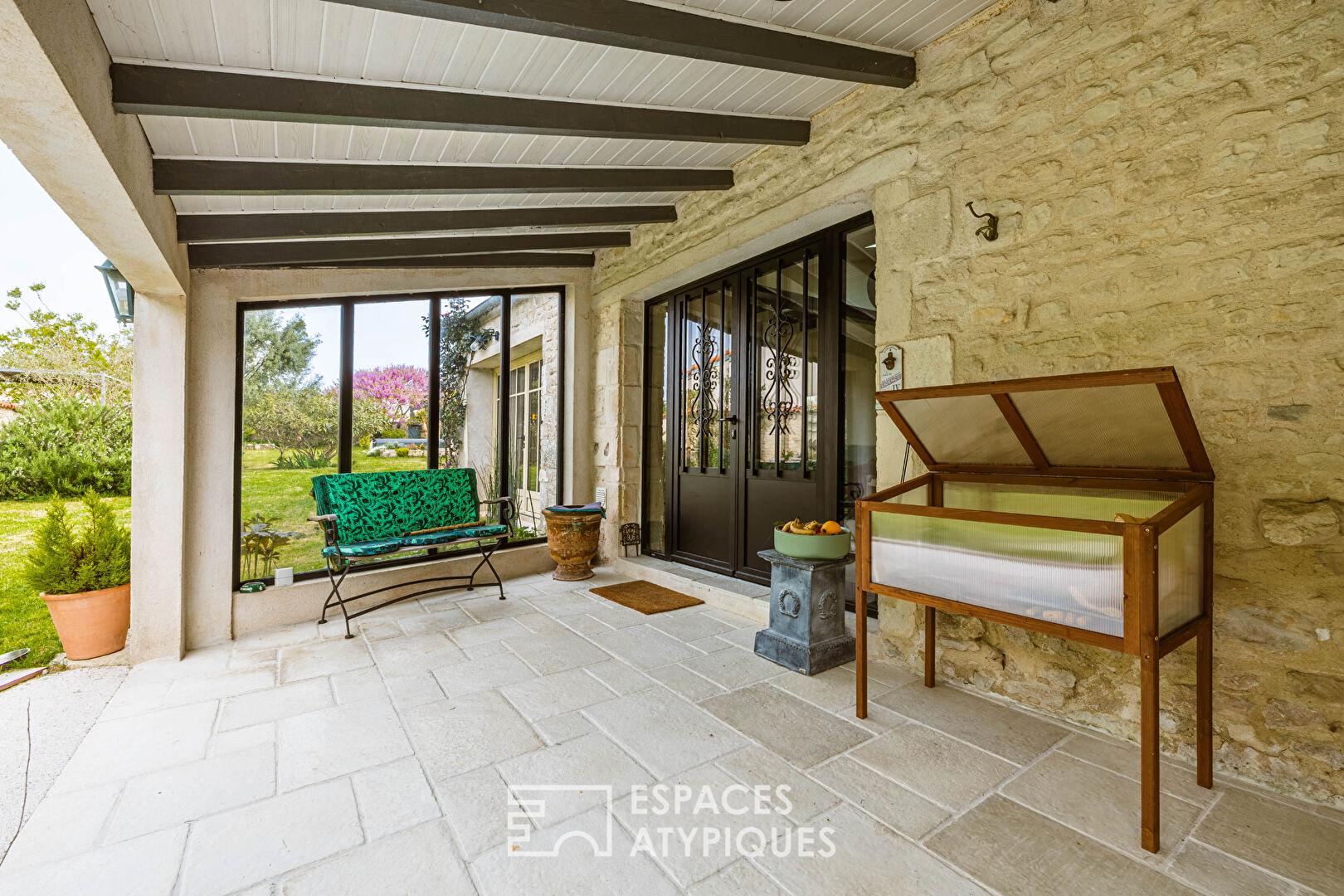Cette maison ancienne à La Jarne, résolument chaleureuse et conviviale, fera le bonheur des amateurs de jardins paysagés et de vieilles pierres.