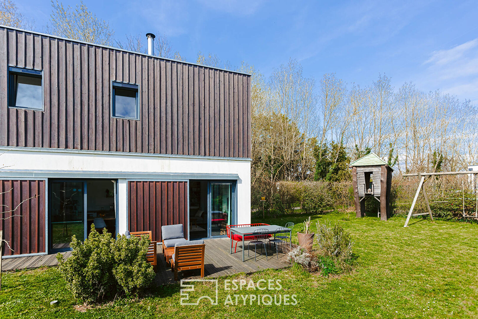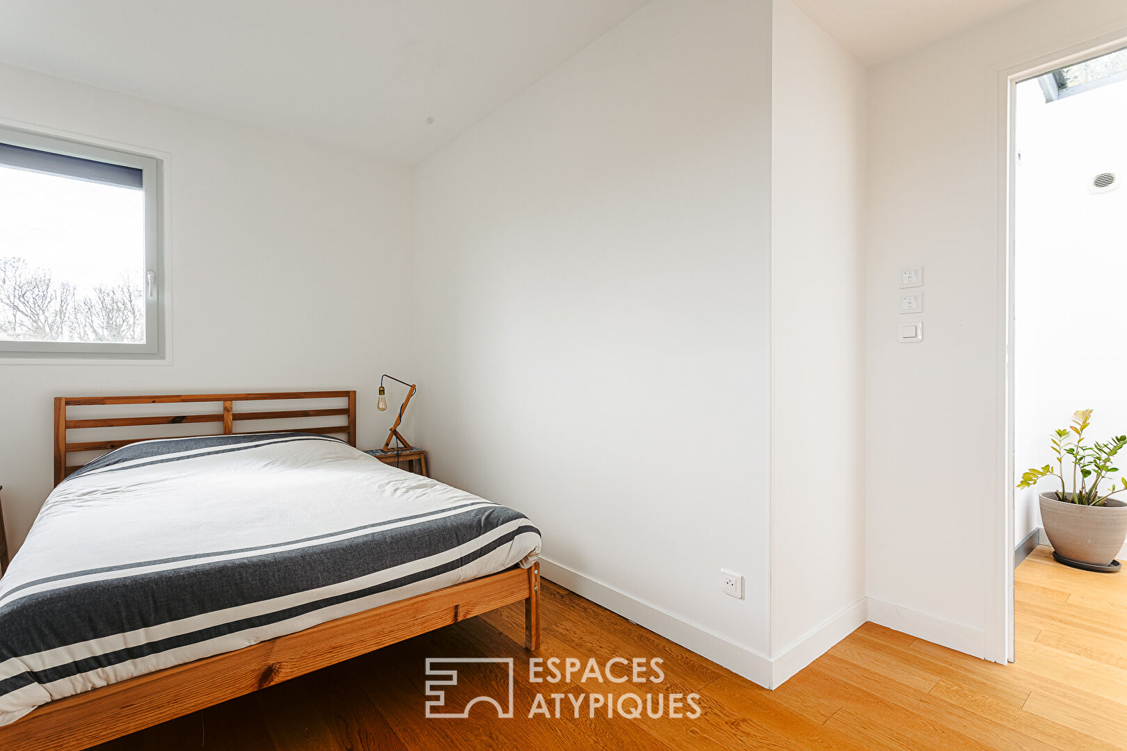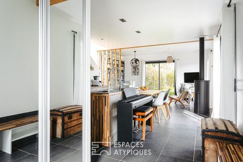 Répartie sur deux niveaux, cette construction contemporaine non mitoyenne se déploie sur environ 102m2.